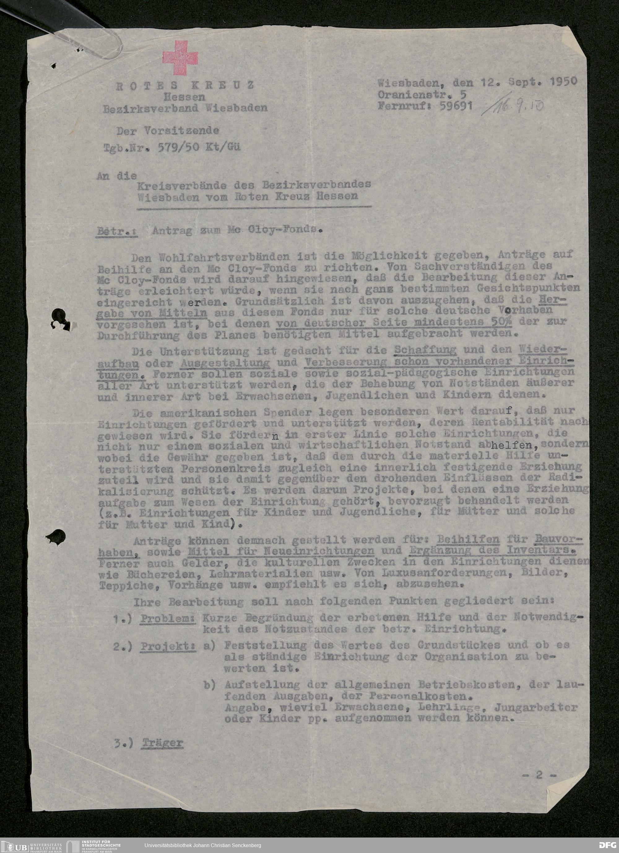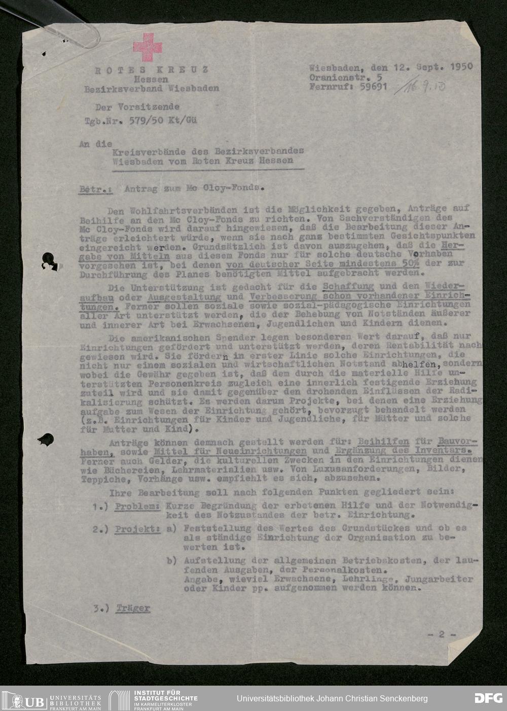 V176 Senckenberg Gesellschaft für Naturforschung, 472 - Antrag auf Unterstützung des Wiederaufbaus des Senckenbergmuseums aus Mitteln des McCloy-Fonds