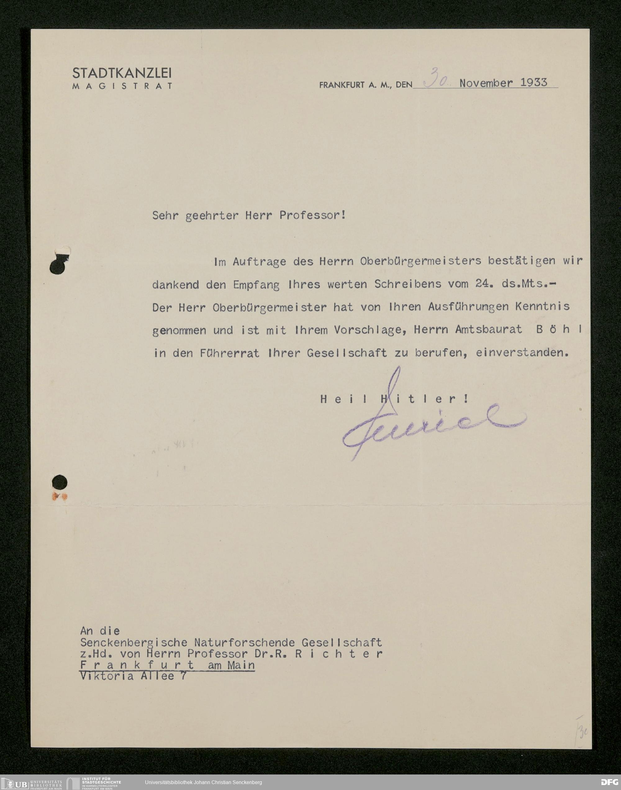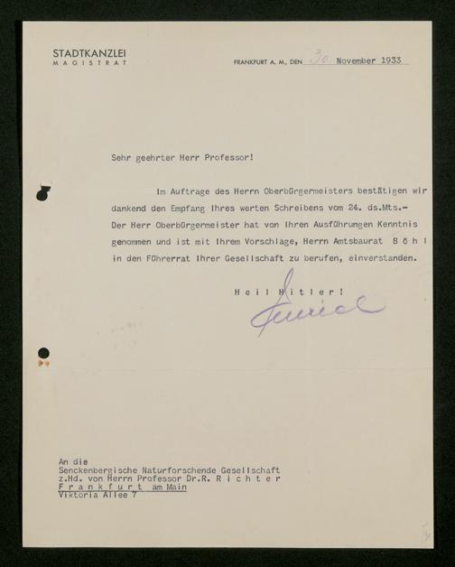 V176 Senckenberg Gesellschaft für Naturforschung, 473 - Korrespondenz mit städtischen Behörden