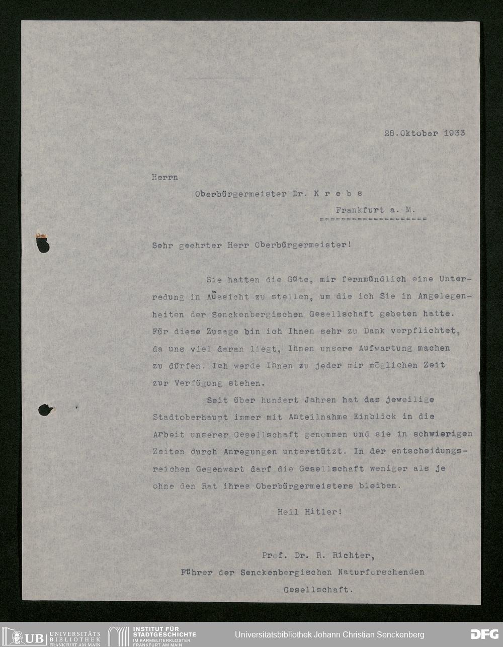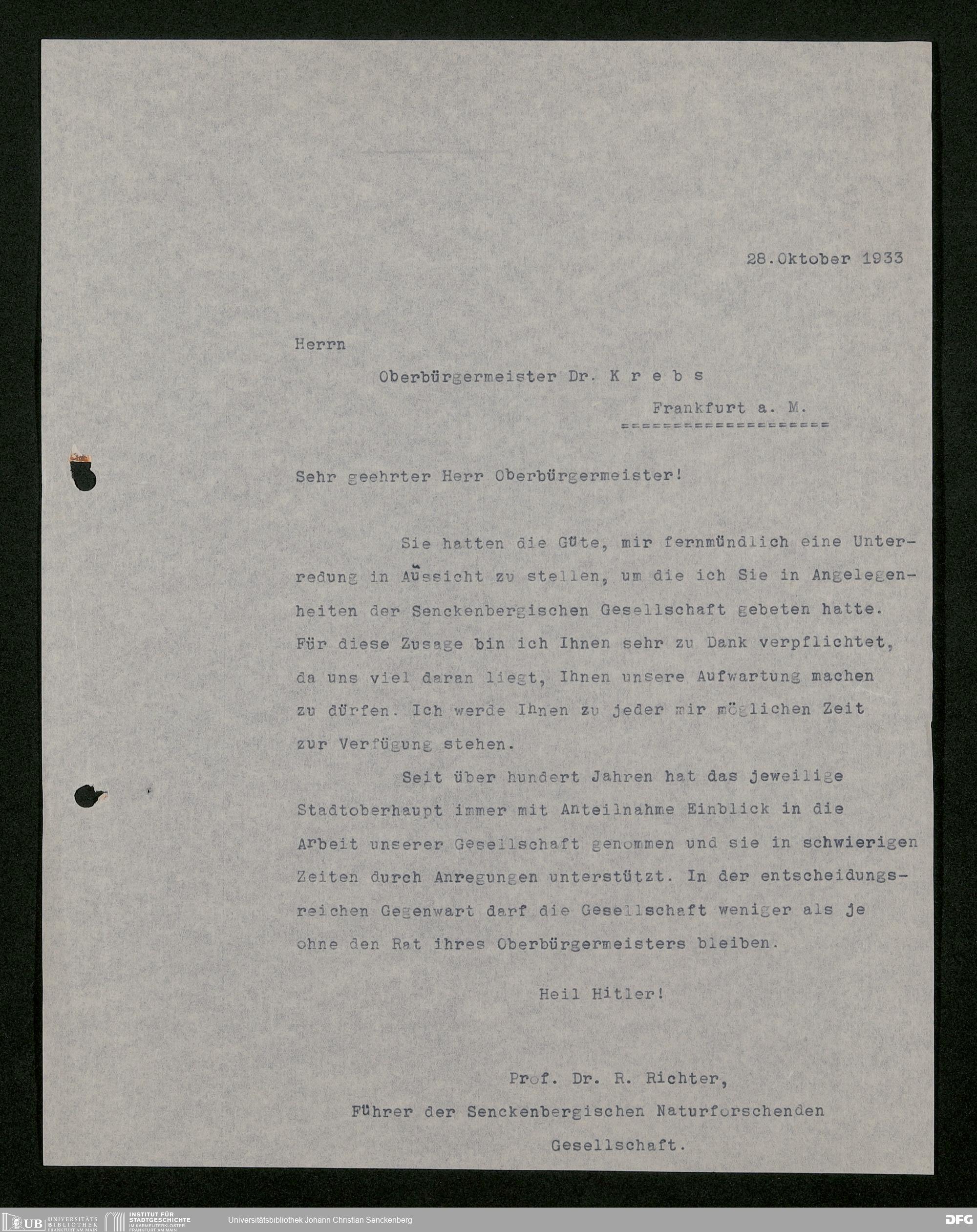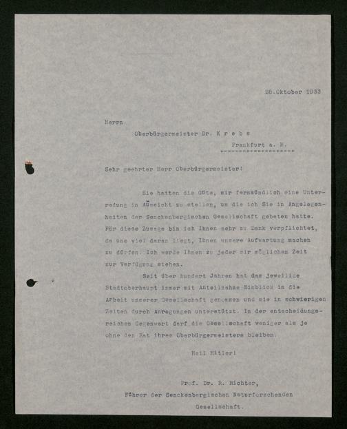 V176 Senckenberg Gesellschaft für Naturforschung, 473 - Korrespondenz mit städtischen Behörden