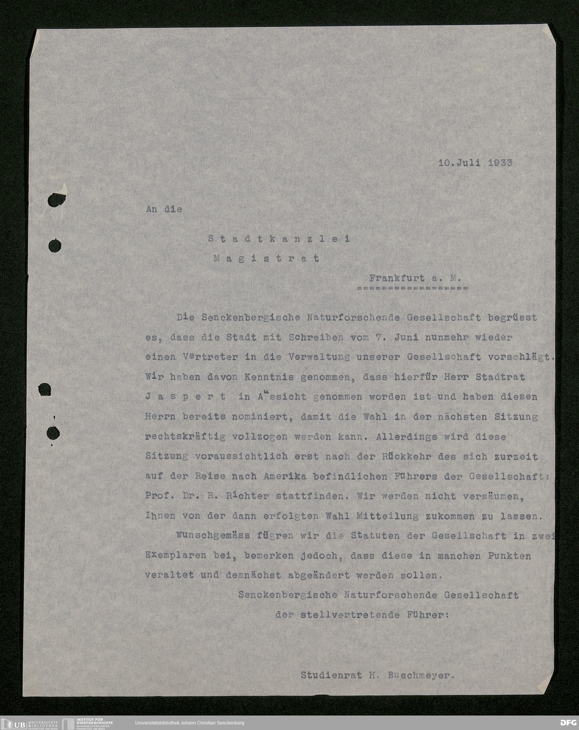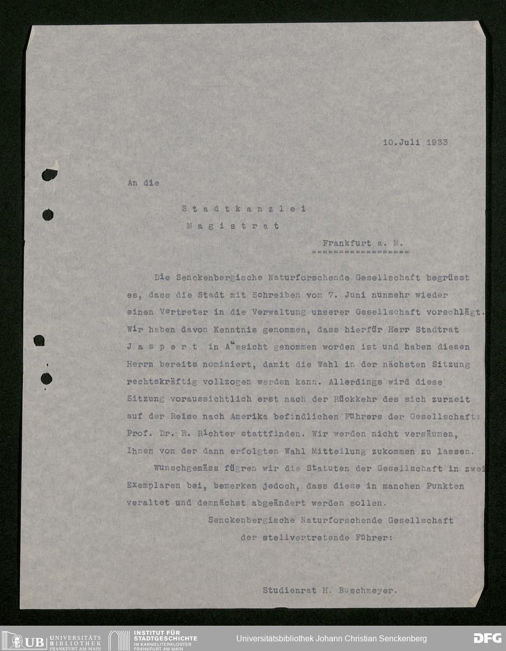 V176 Senckenberg Gesellschaft für Naturforschung, 473 - Korrespondenz mit städtischen Behörden