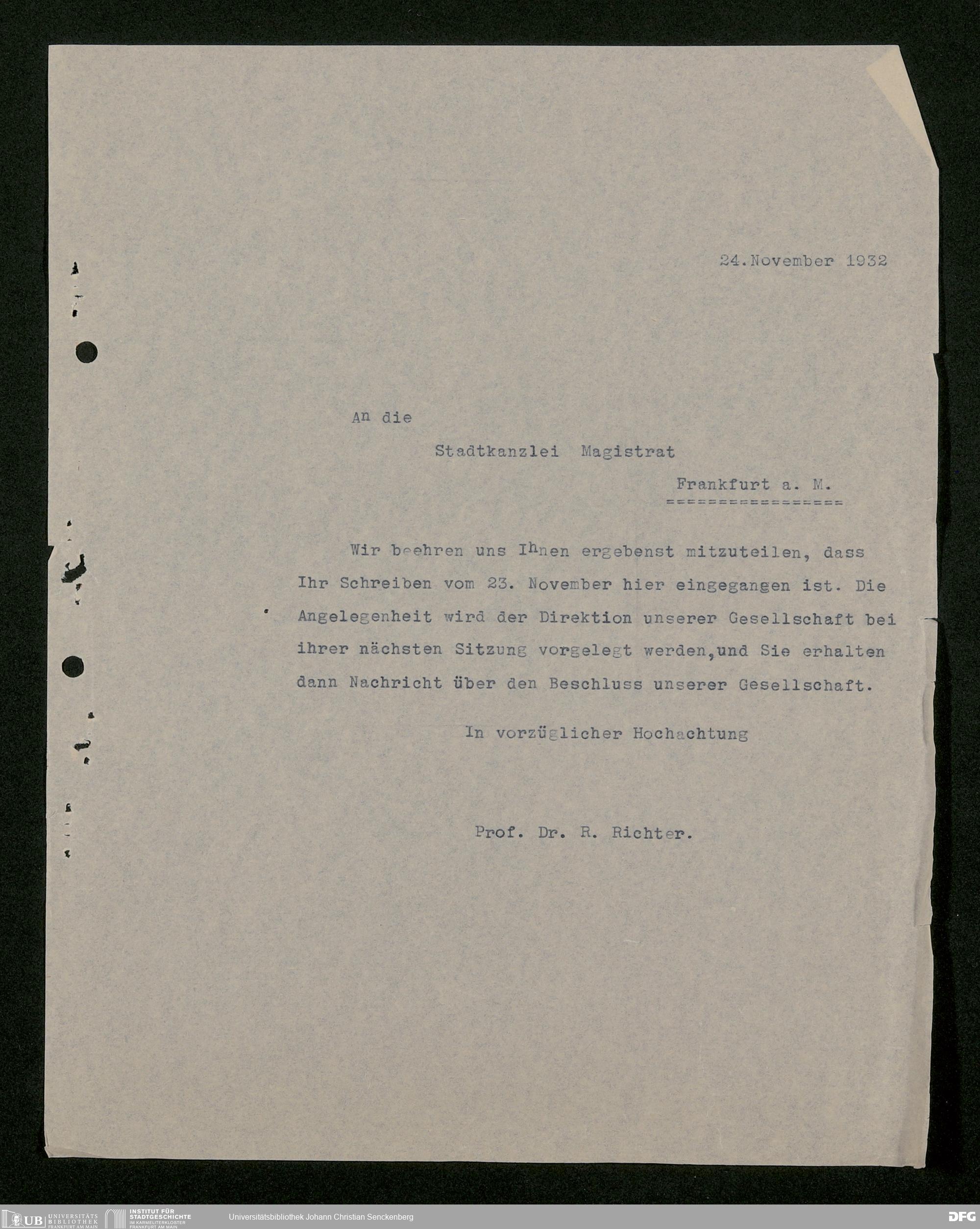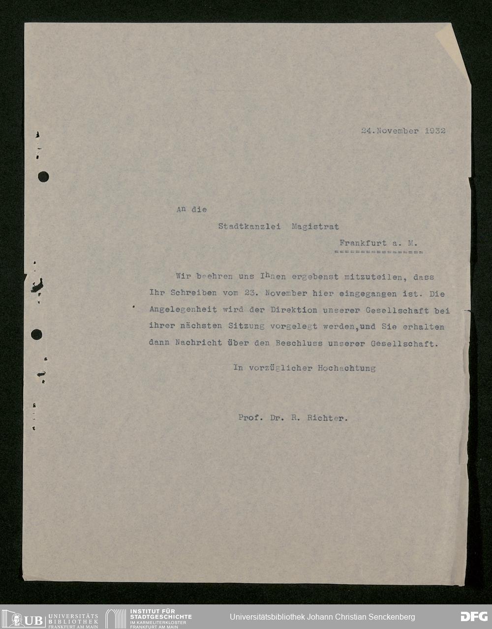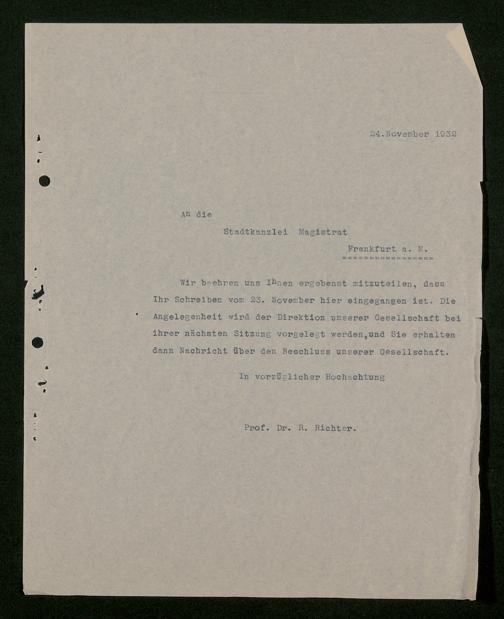 V176 Senckenberg Gesellschaft für Naturforschung, 473 - Korrespondenz mit städtischen Behörden