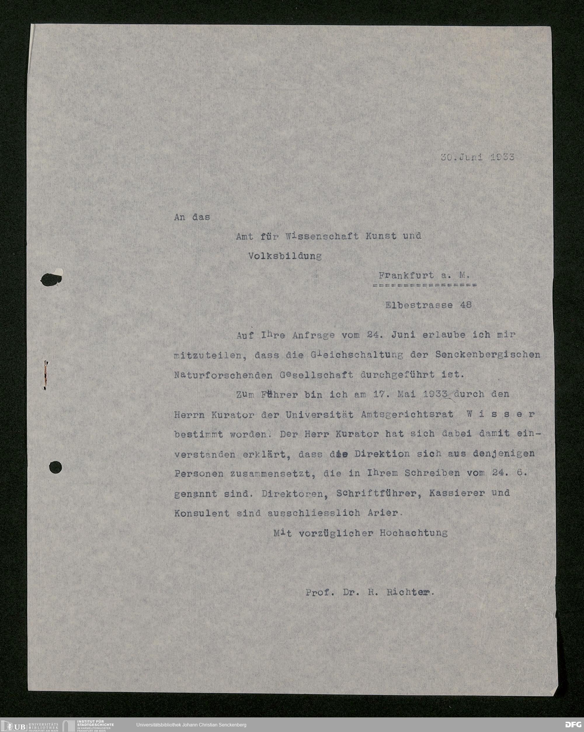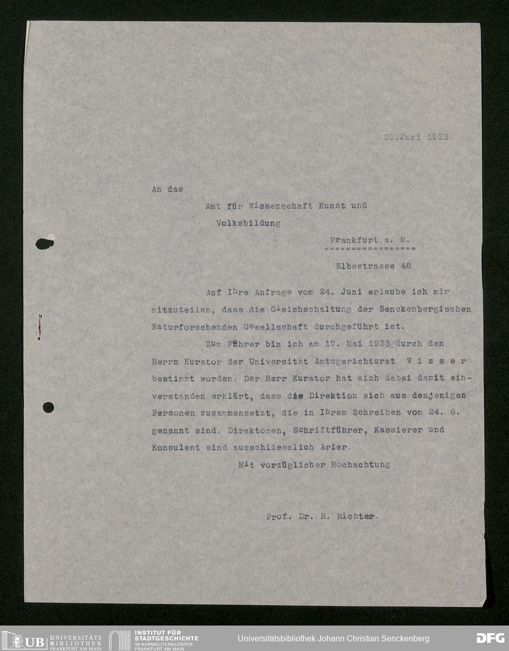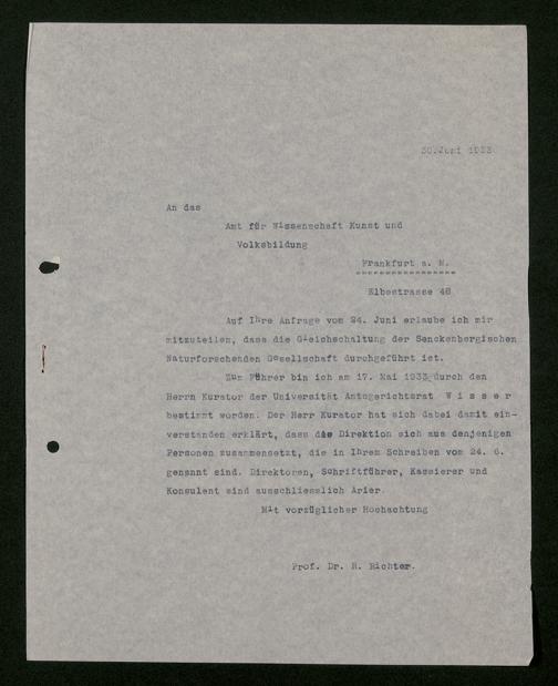 V176 Senckenberg Gesellschaft für Naturforschung, 473 - Korrespondenz mit städtischen Behörden