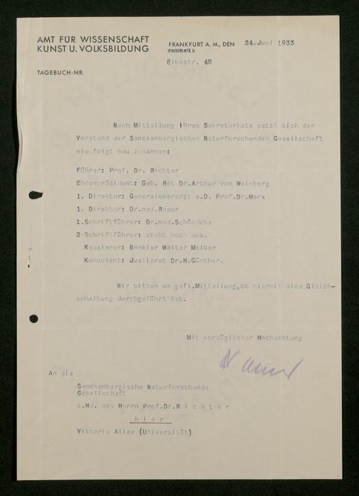 V176 Senckenberg Gesellschaft für Naturforschung, 473 - Korrespondenz mit städtischen Behörden
