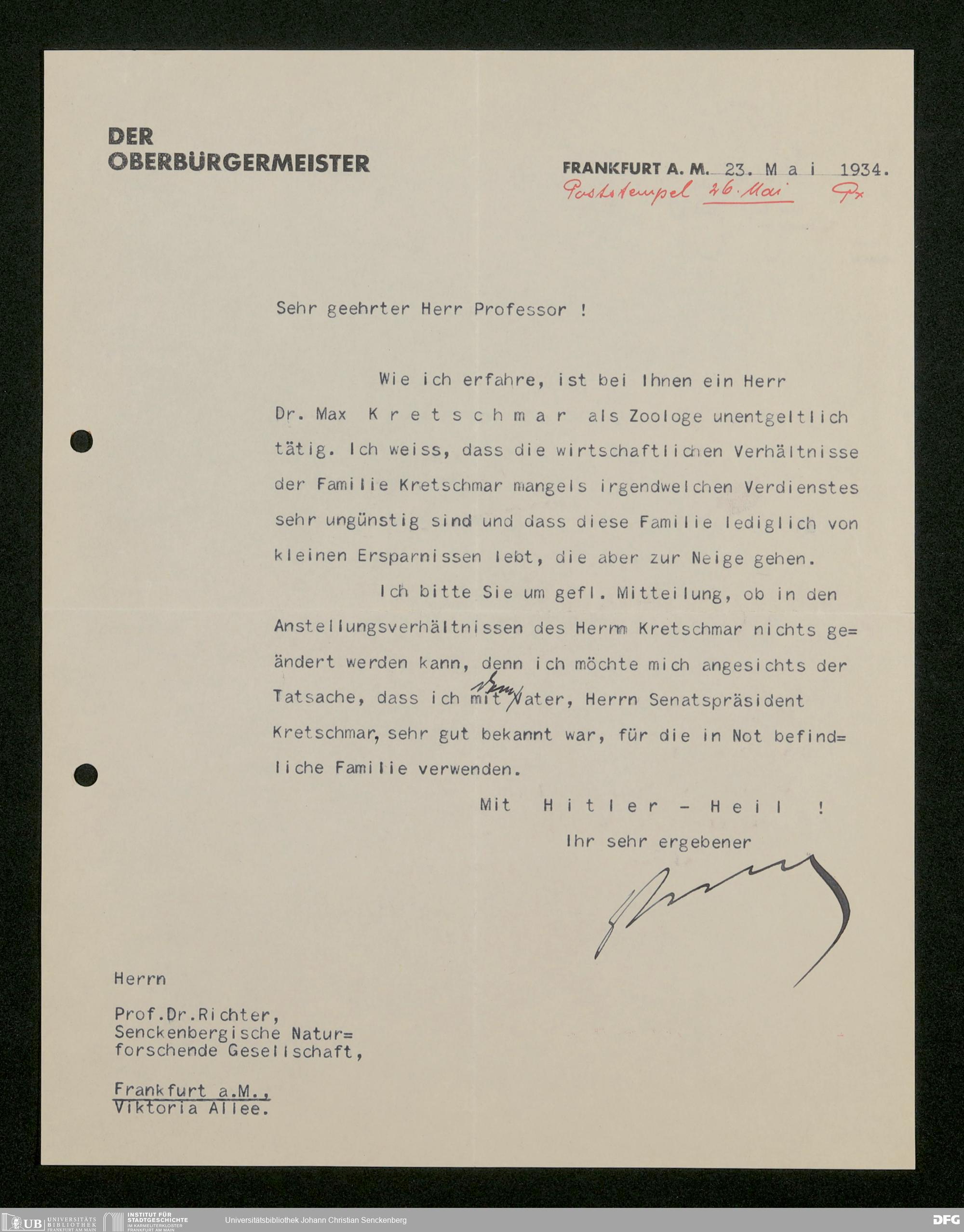 V176 Senckenberg Gesellschaft für Naturforschung, 473 - Korrespondenz mit städtischen Behörden