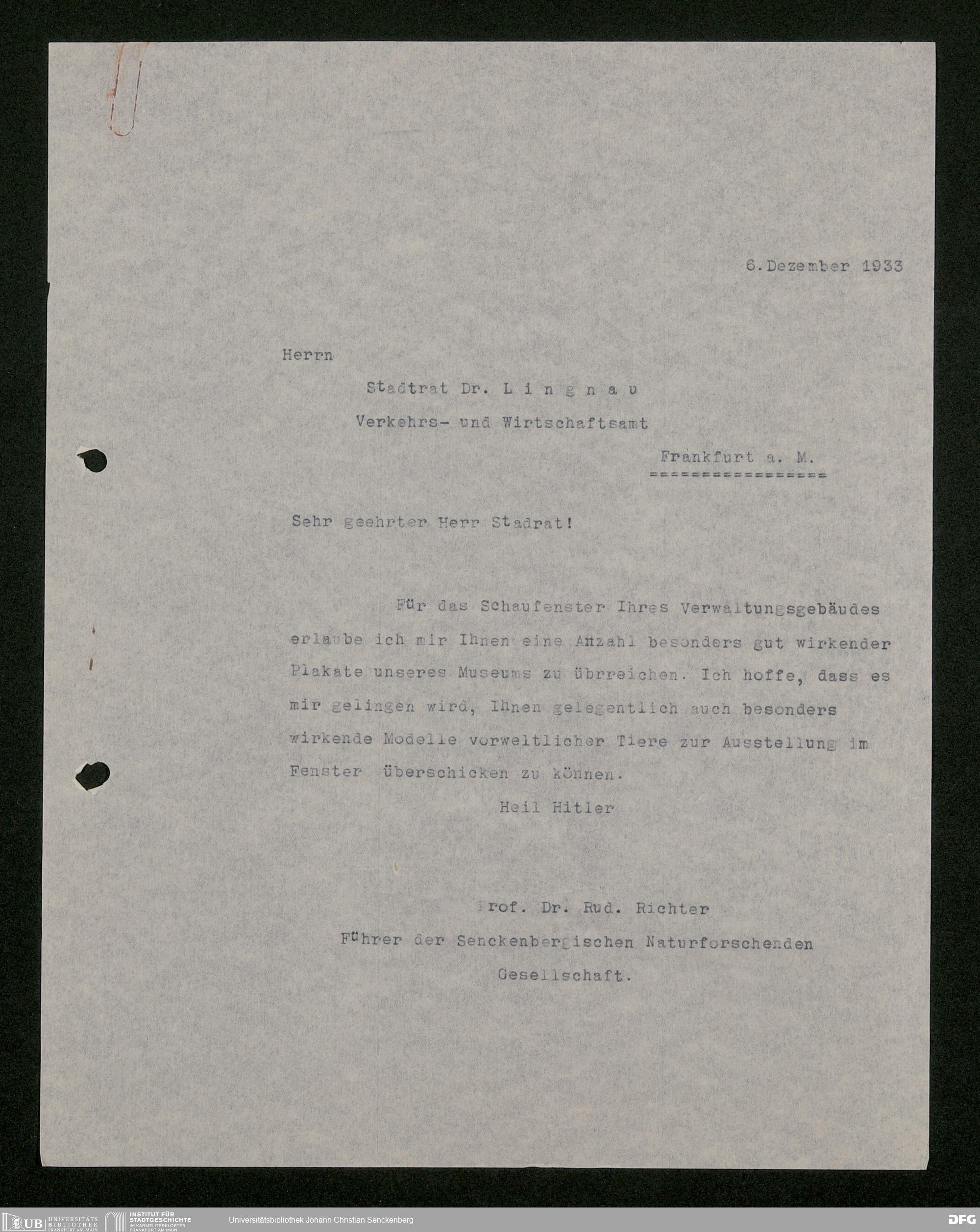 V176 Senckenberg Gesellschaft für Naturforschung, 473 - Korrespondenz mit städtischen Behörden