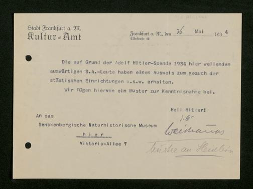 V176 Senckenberg Gesellschaft für Naturforschung, 473 - Korrespondenz mit städtischen Behörden