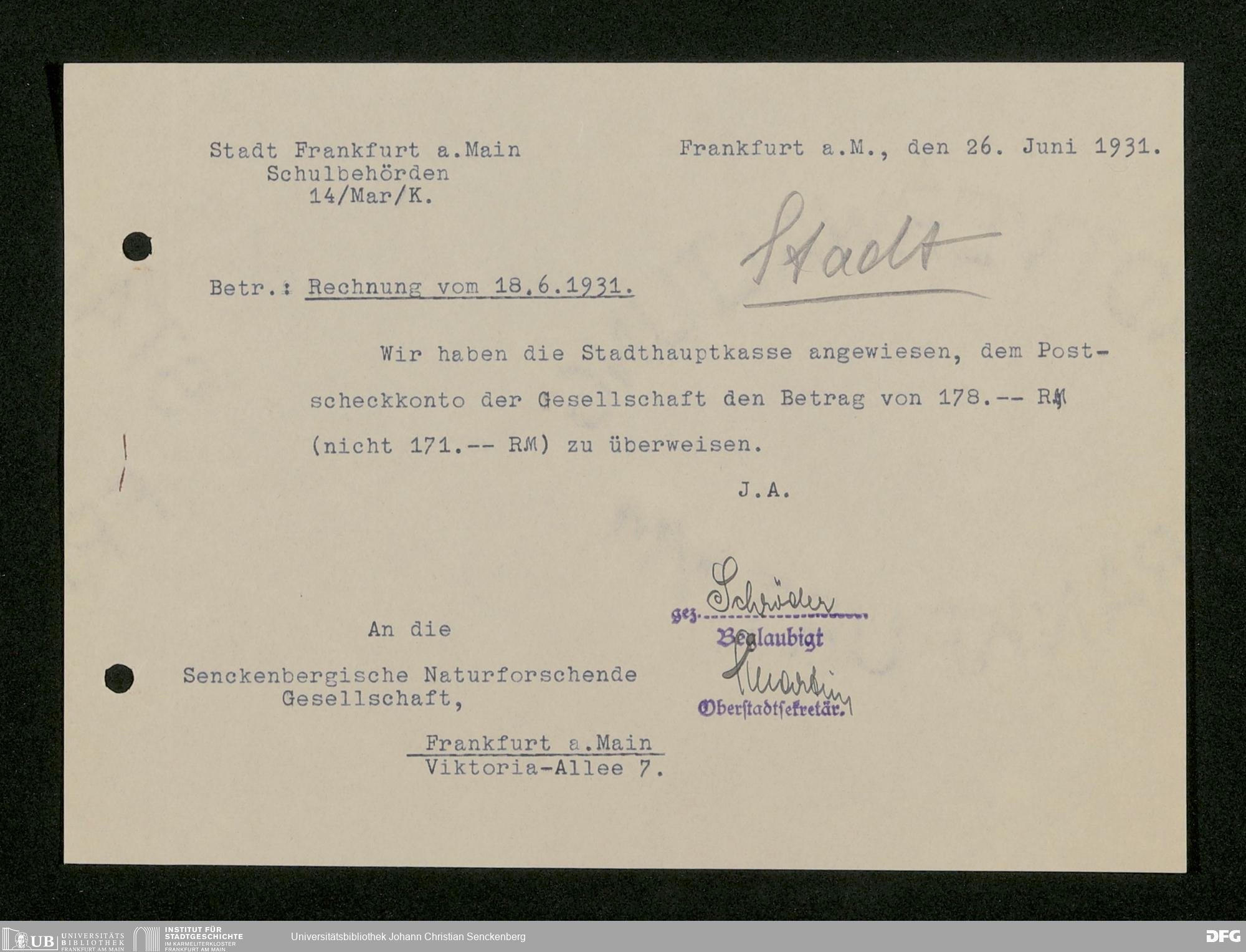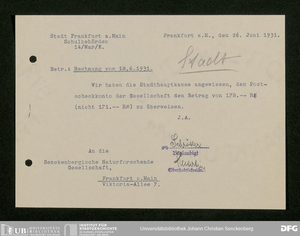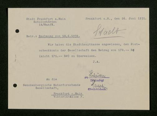 V176 Senckenberg Gesellschaft für Naturforschung, 473 - Korrespondenz mit städtischen Behörden