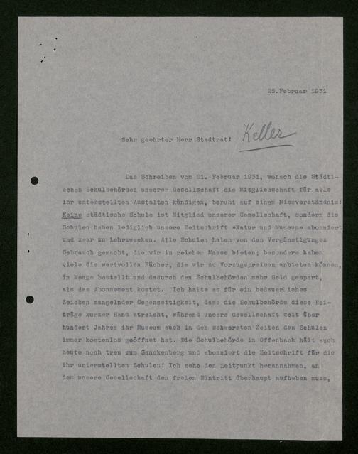 V176 Senckenberg Gesellschaft für Naturforschung, 473 - Korrespondenz mit städtischen Behörden