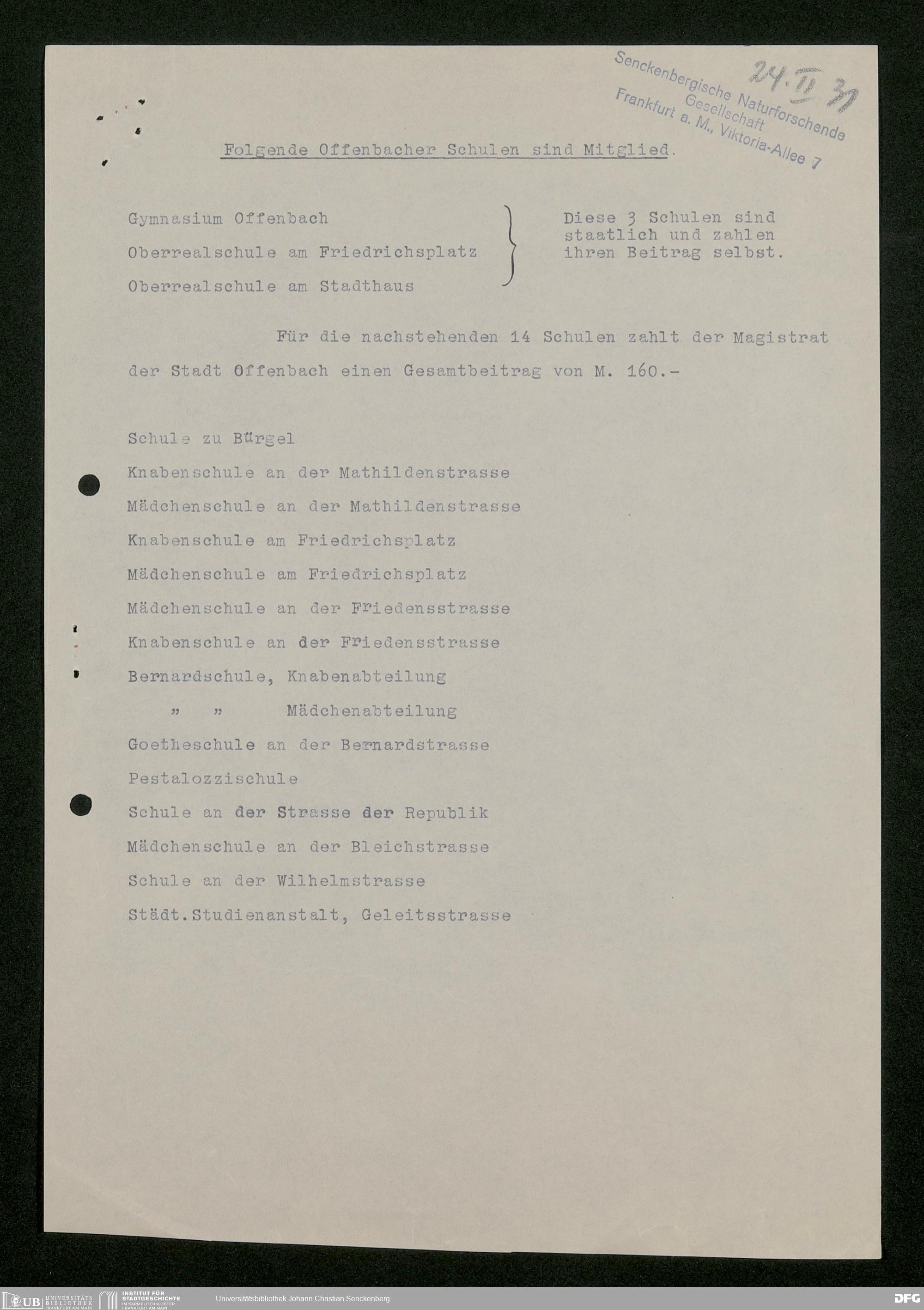 V176 Senckenberg Gesellschaft für Naturforschung, 473 - Korrespondenz mit städtischen Behörden