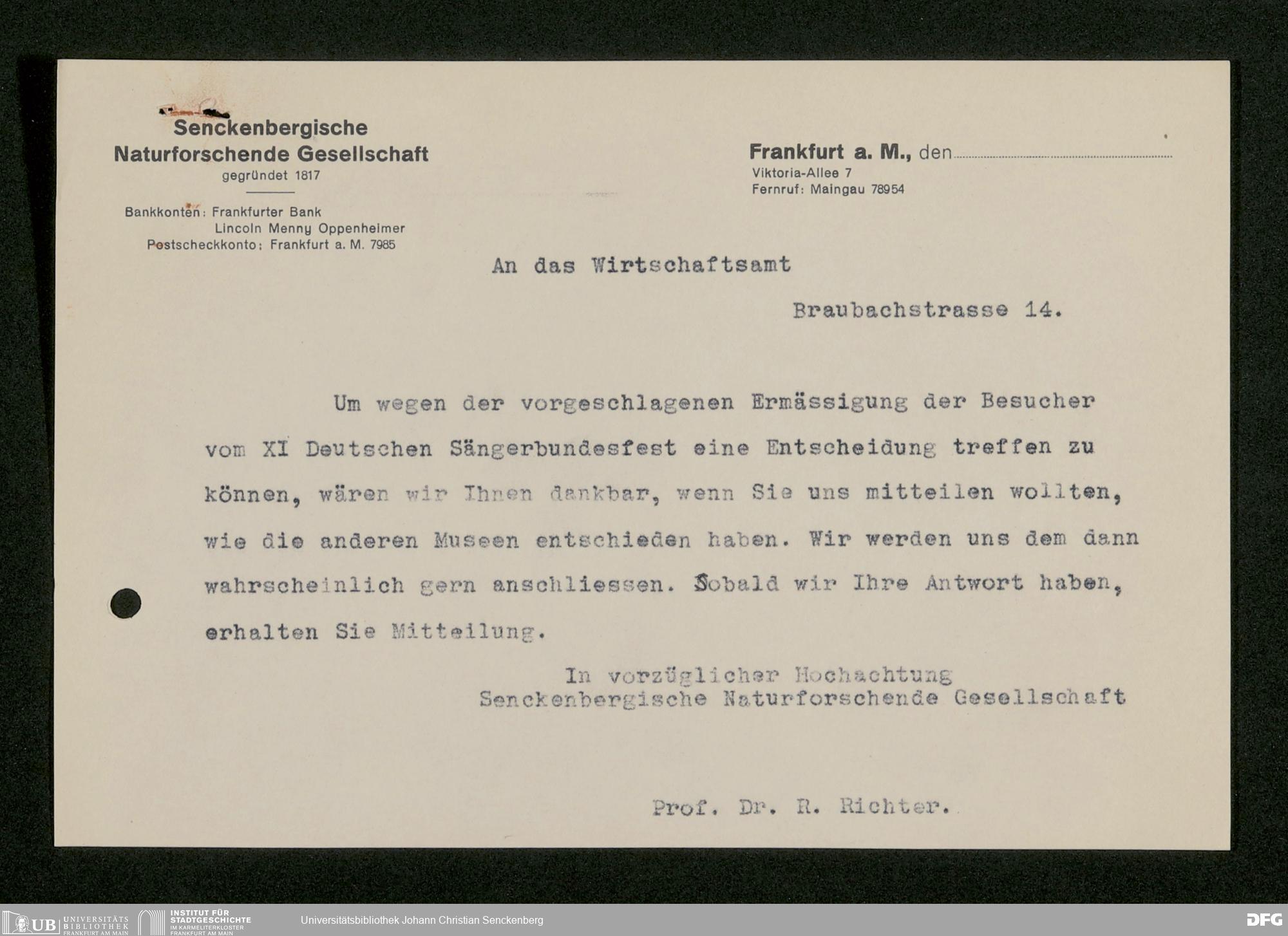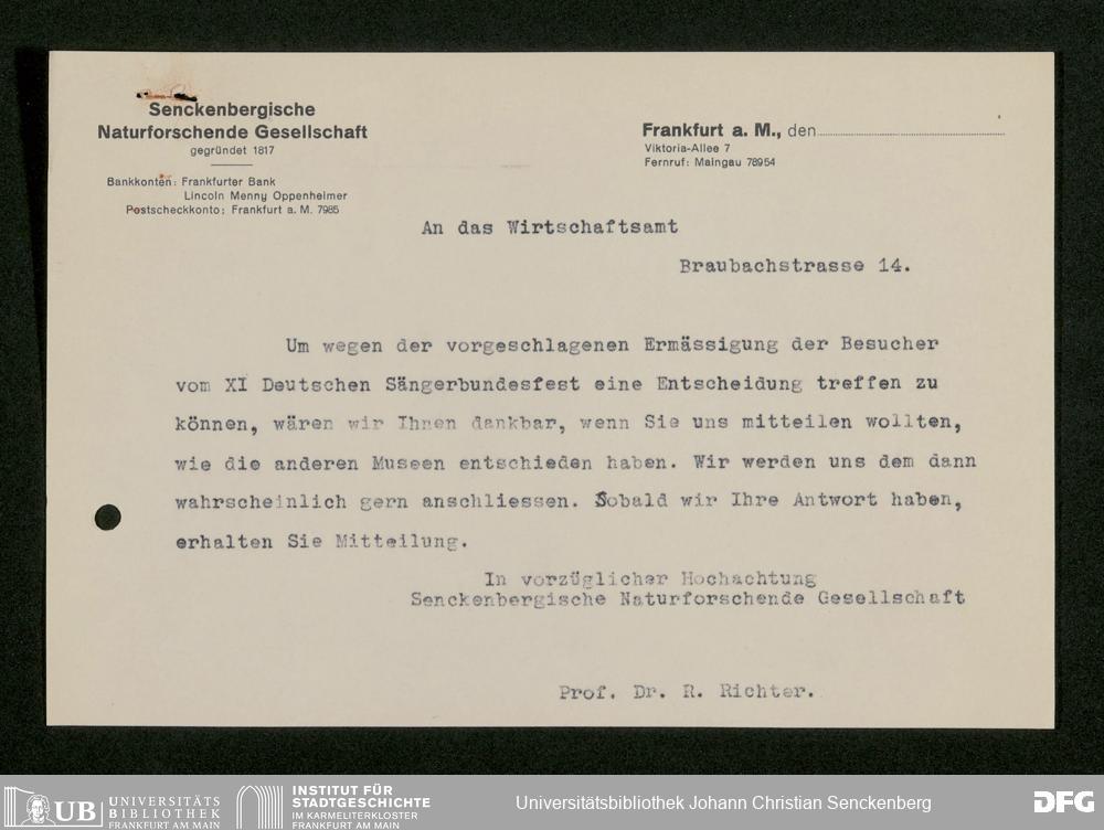 V176 Senckenberg Gesellschaft für Naturforschung, 473 - Korrespondenz mit städtischen Behörden