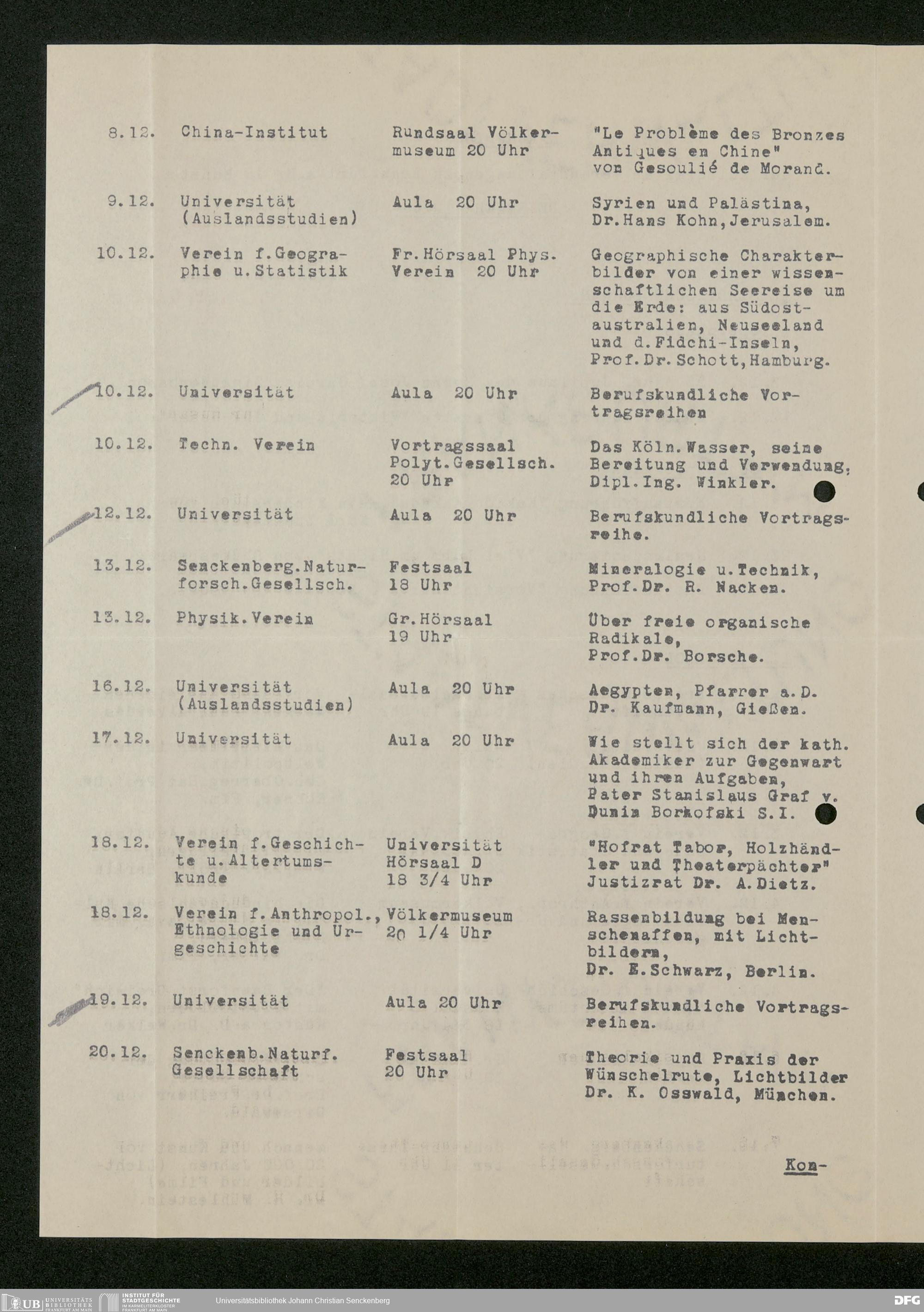 V176 Senckenberg Gesellschaft für Naturforschung, 473 - Korrespondenz mit städtischen Behörden