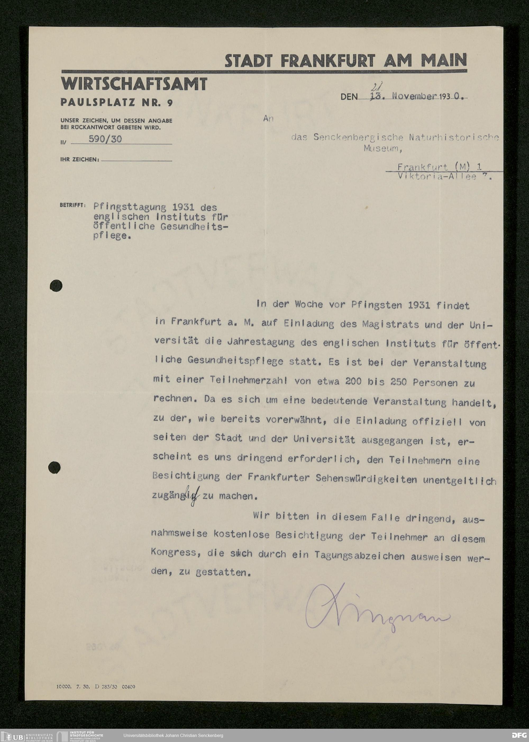 V176 Senckenberg Gesellschaft für Naturforschung, 473 - Korrespondenz mit städtischen Behörden