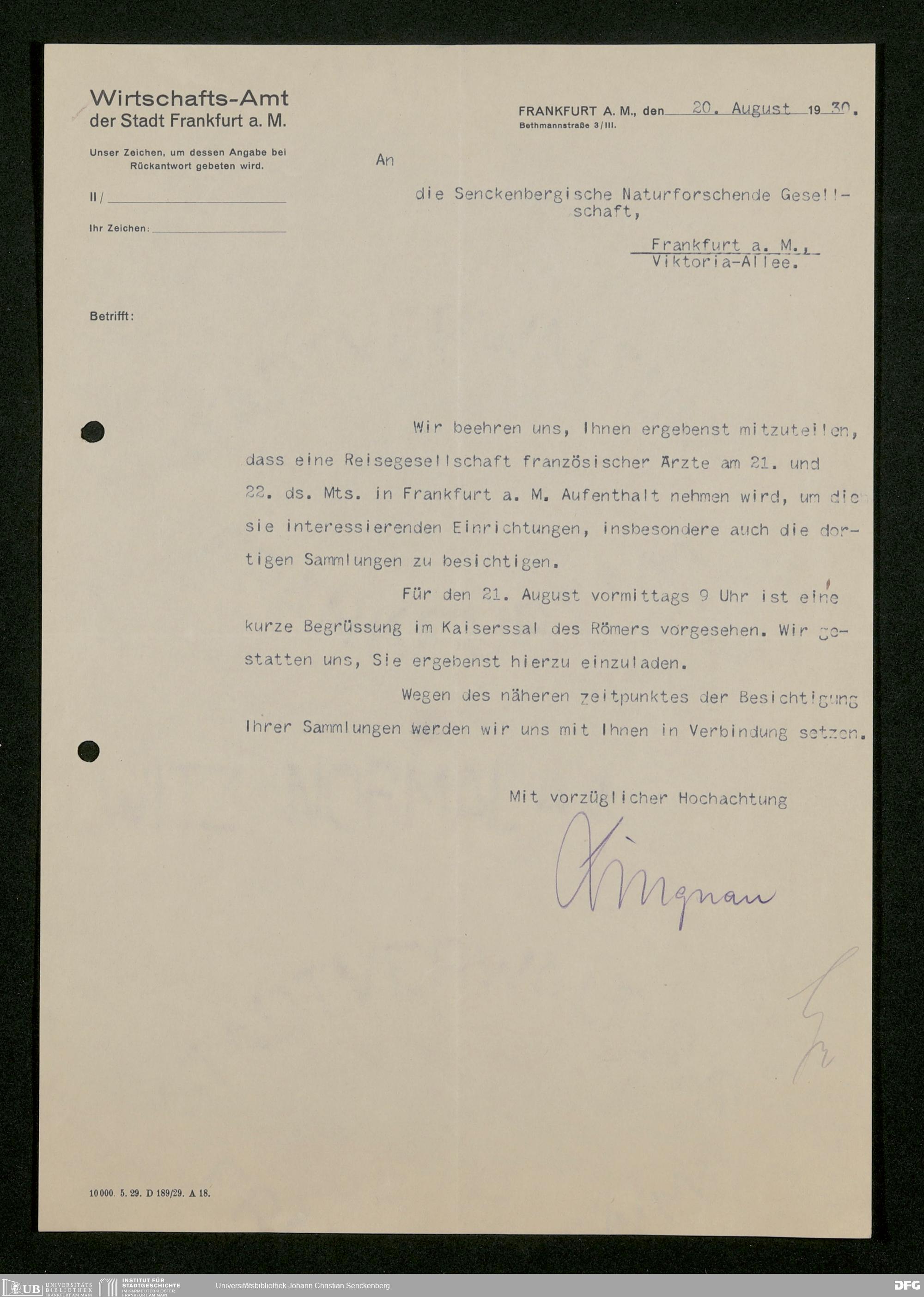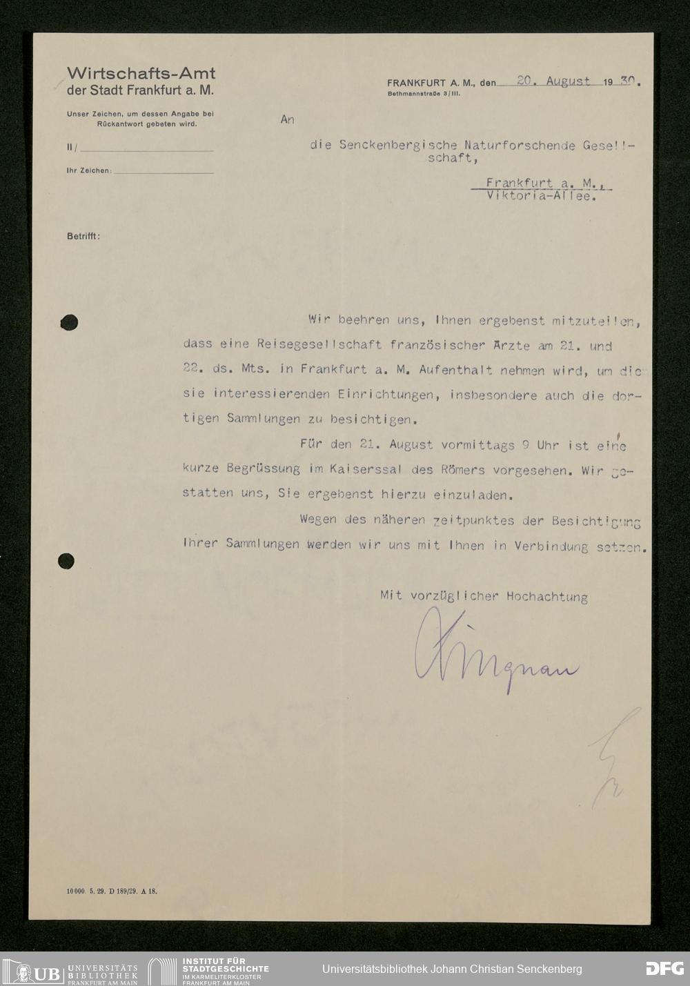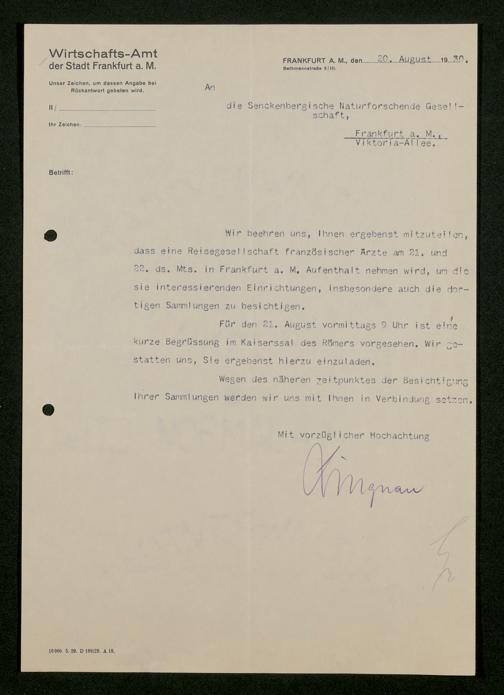 V176 Senckenberg Gesellschaft für Naturforschung, 473 - Korrespondenz mit städtischen Behörden