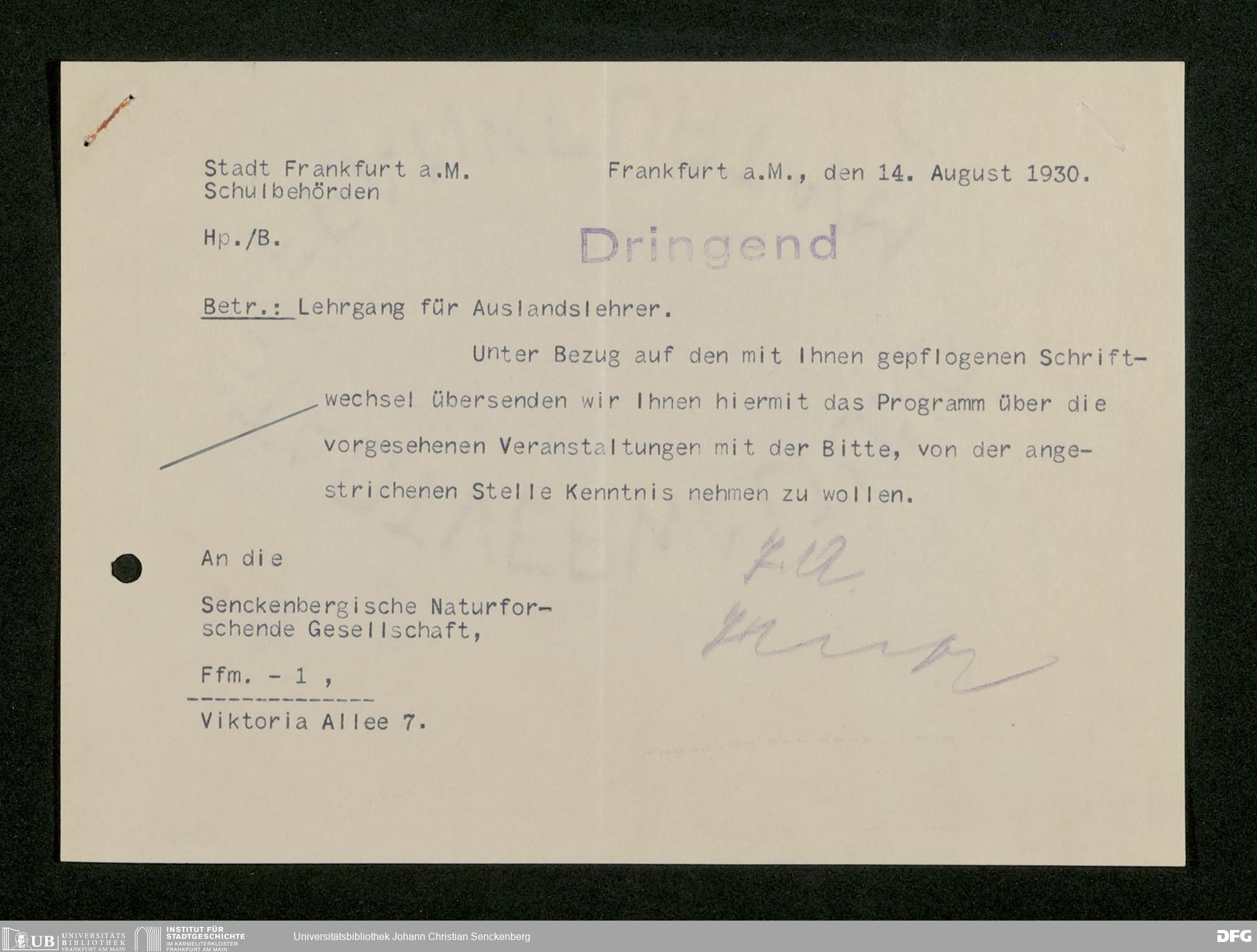 V176 Senckenberg Gesellschaft für Naturforschung, 473 - Korrespondenz mit städtischen Behörden
