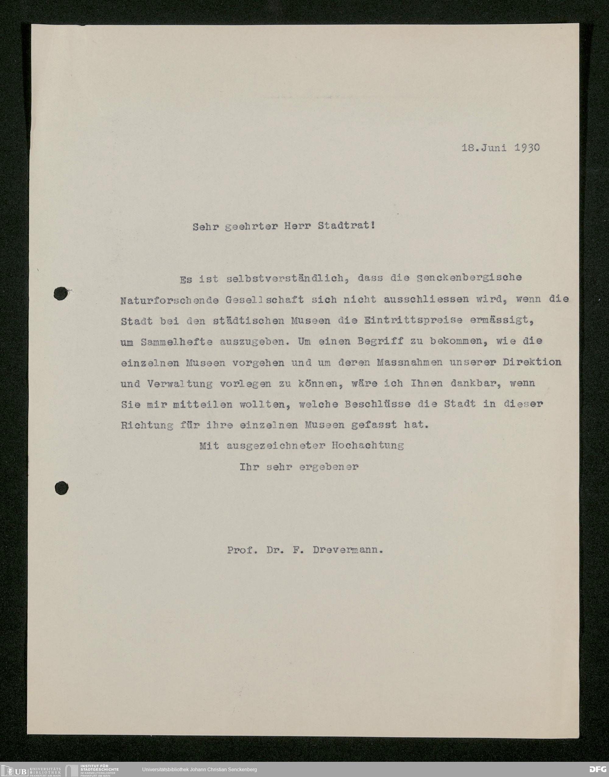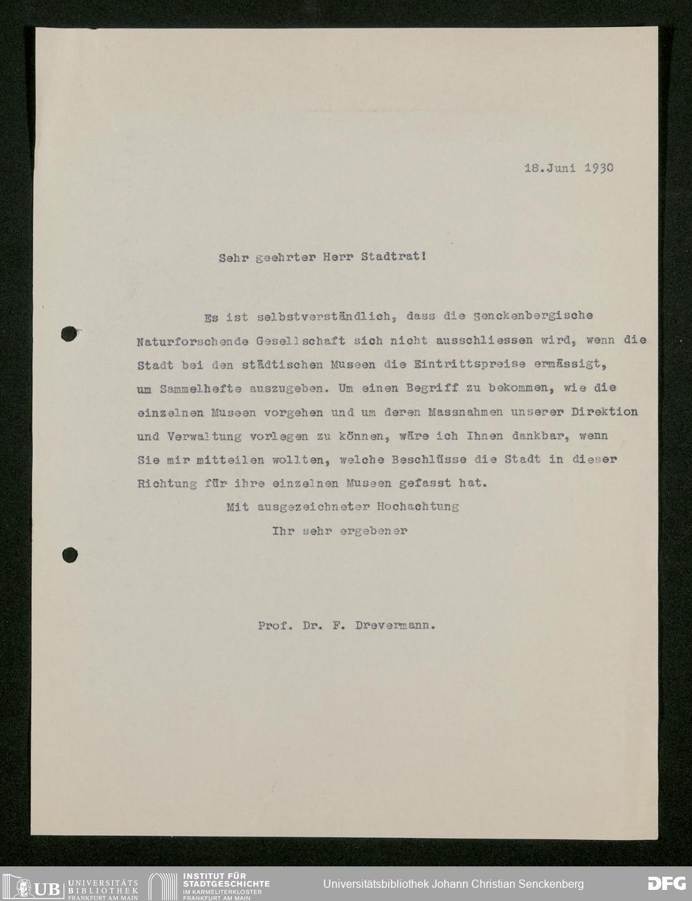 V176 Senckenberg Gesellschaft für Naturforschung, 473 - Korrespondenz mit städtischen Behörden