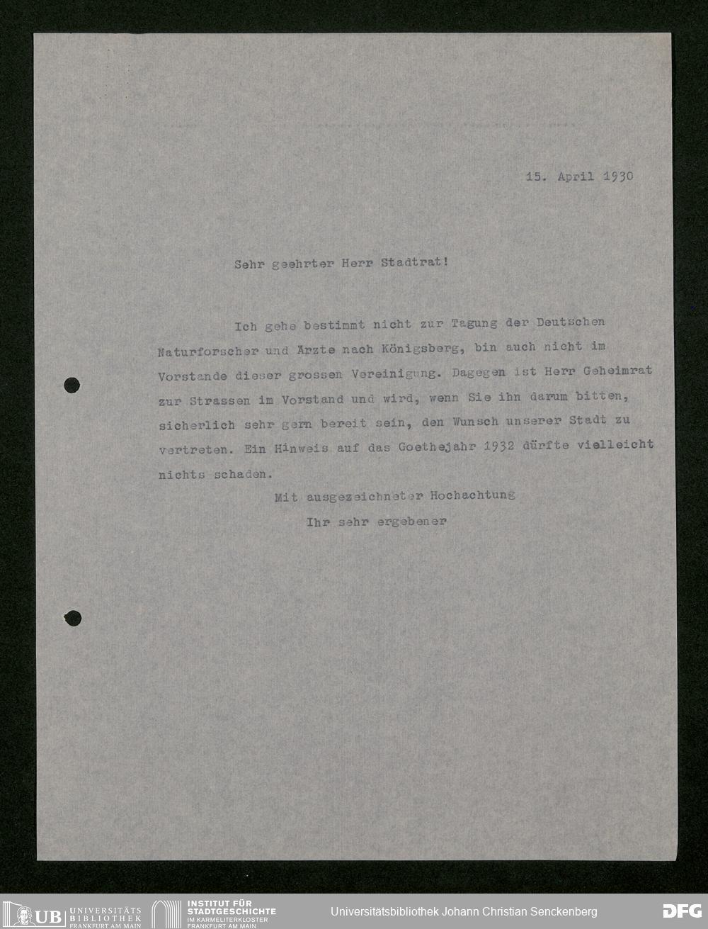 V176 Senckenberg Gesellschaft für Naturforschung, 473 - Korrespondenz mit städtischen Behörden