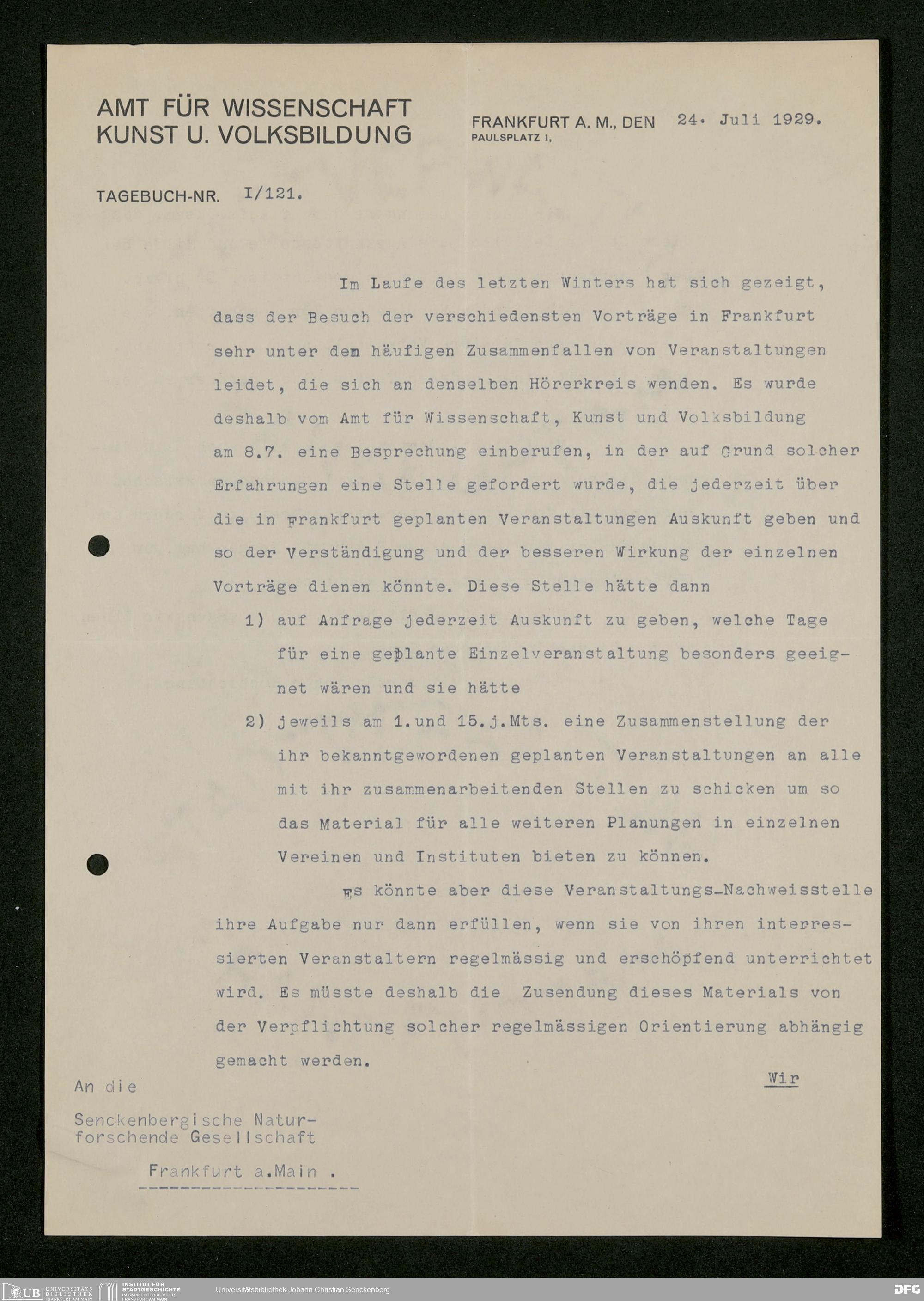 V176 Senckenberg Gesellschaft für Naturforschung, 473 - Korrespondenz mit städtischen Behörden