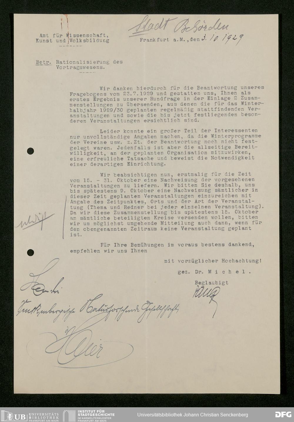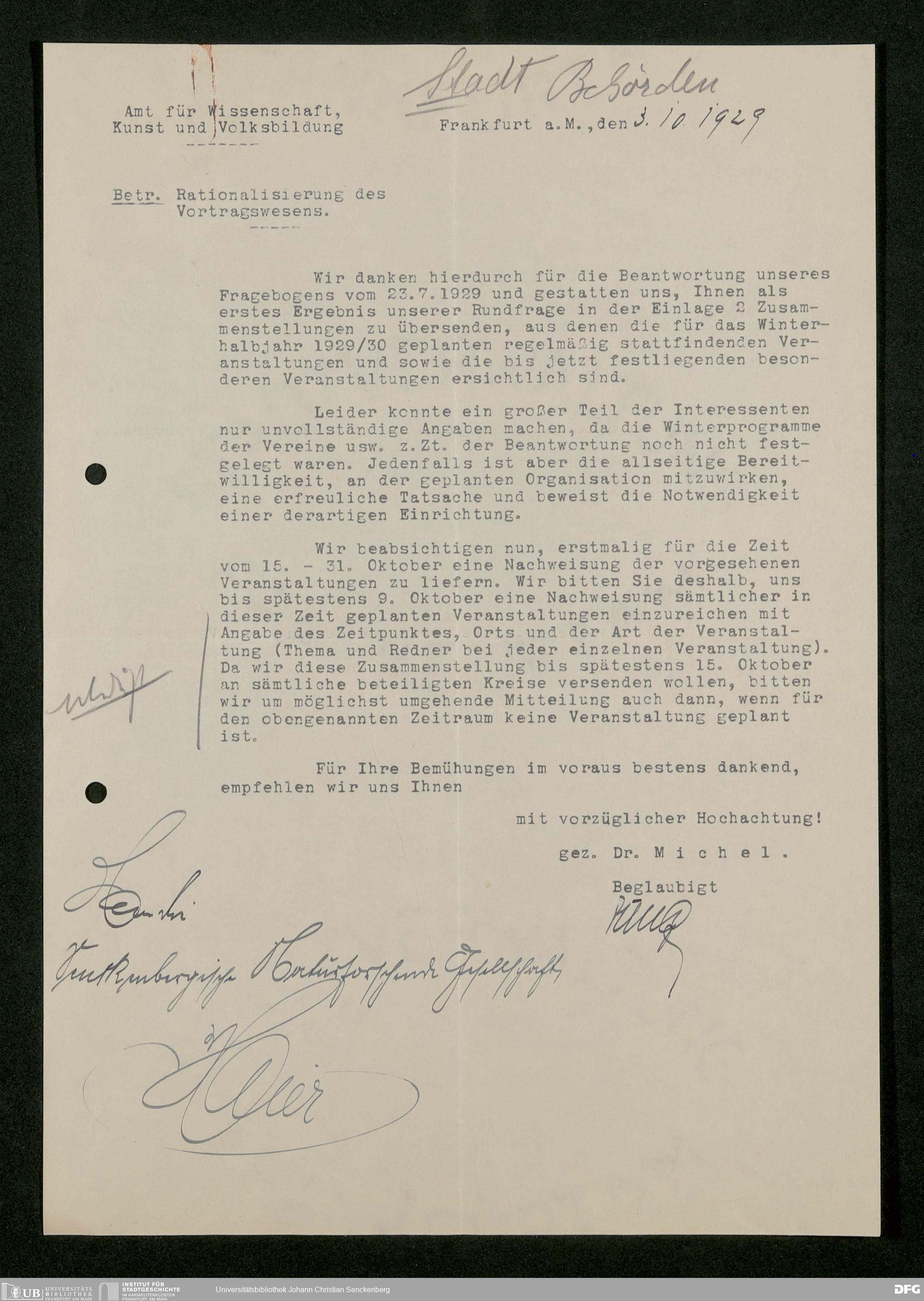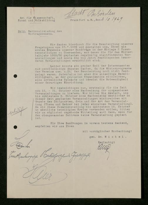 V176 Senckenberg Gesellschaft für Naturforschung, 473 - Korrespondenz mit städtischen Behörden