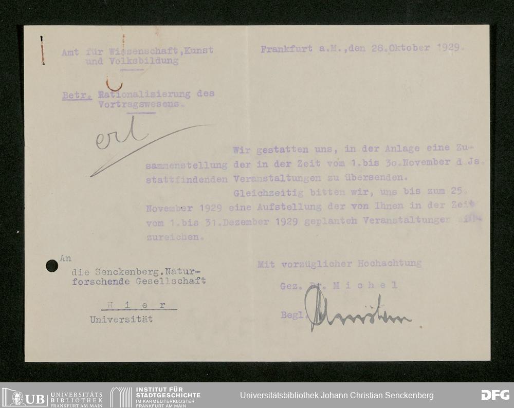 V176 Senckenberg Gesellschaft für Naturforschung, 473 - Korrespondenz mit städtischen Behörden