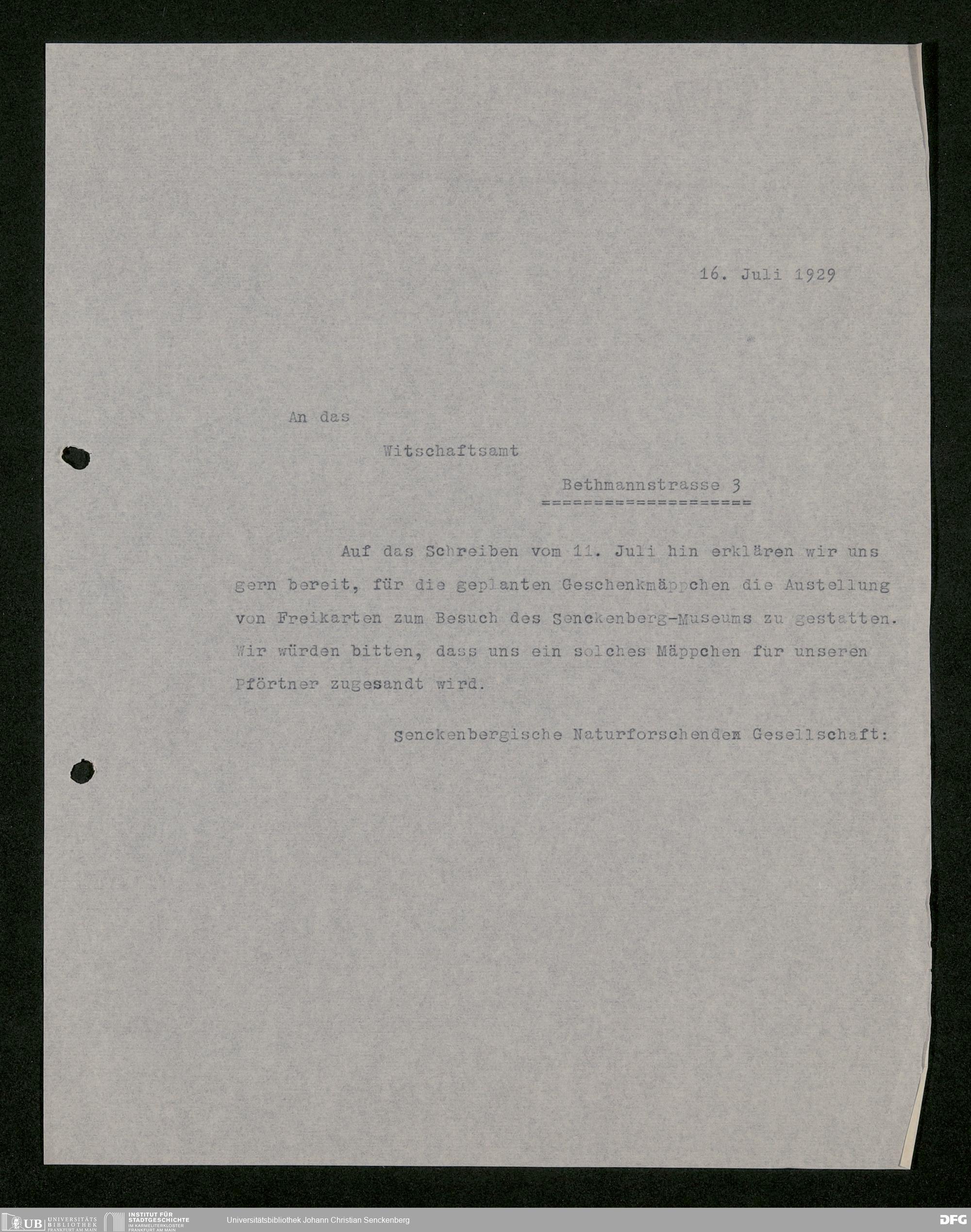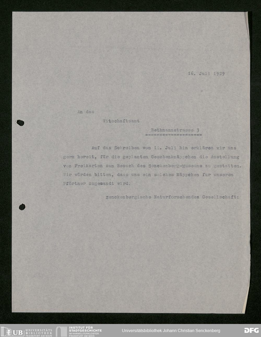 V176 Senckenberg Gesellschaft für Naturforschung, 473 - Korrespondenz mit städtischen Behörden