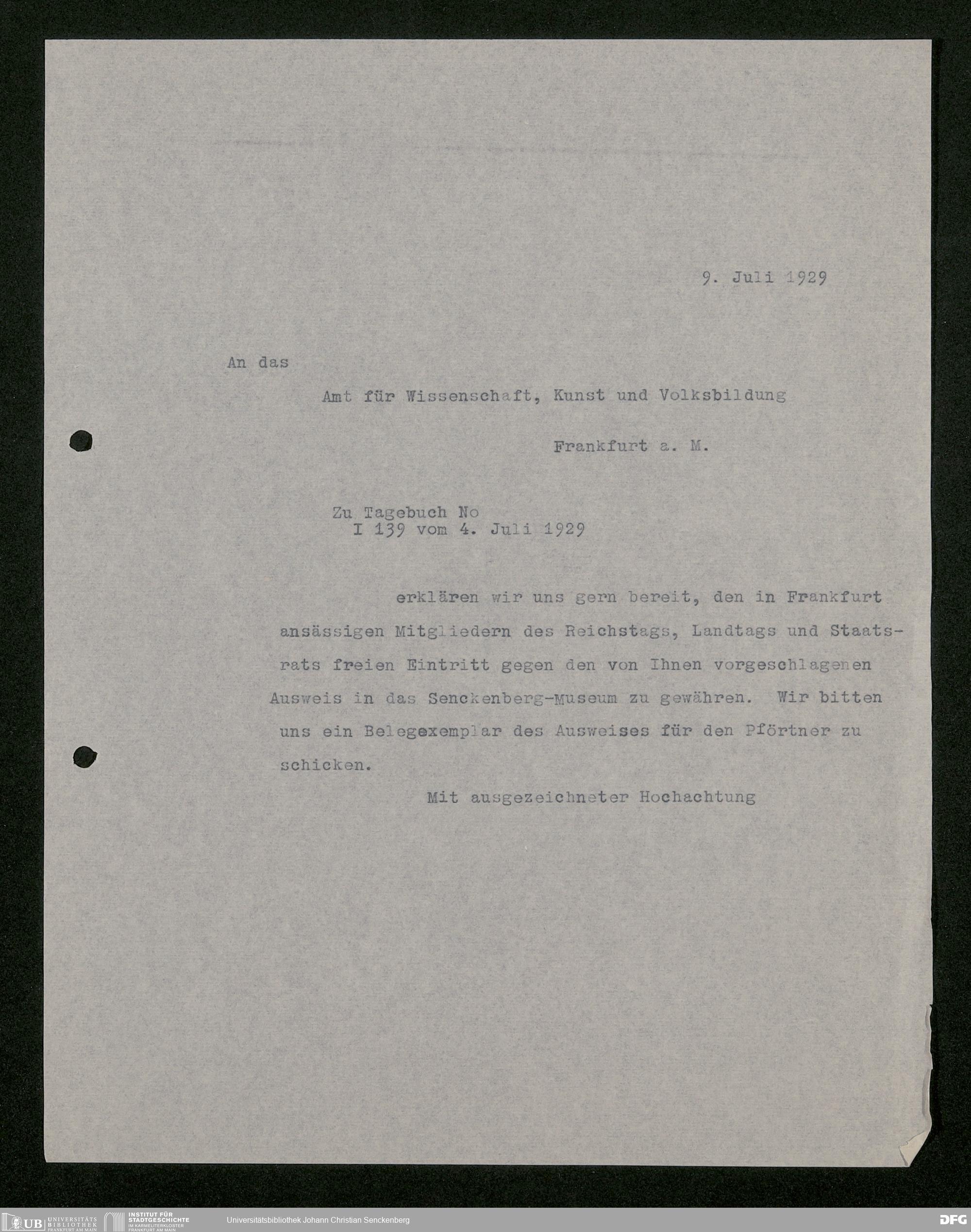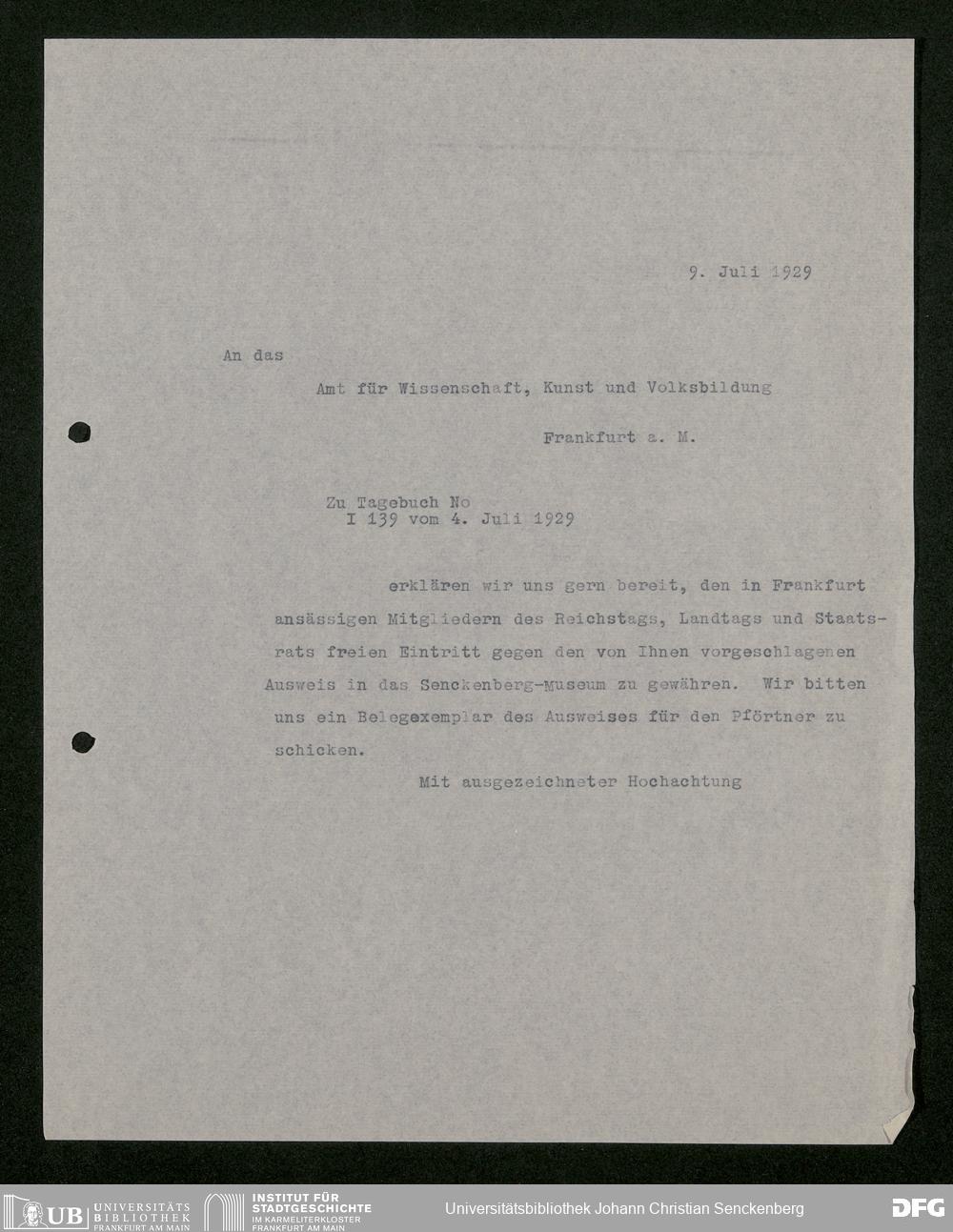 V176 Senckenberg Gesellschaft für Naturforschung, 473 - Korrespondenz mit städtischen Behörden