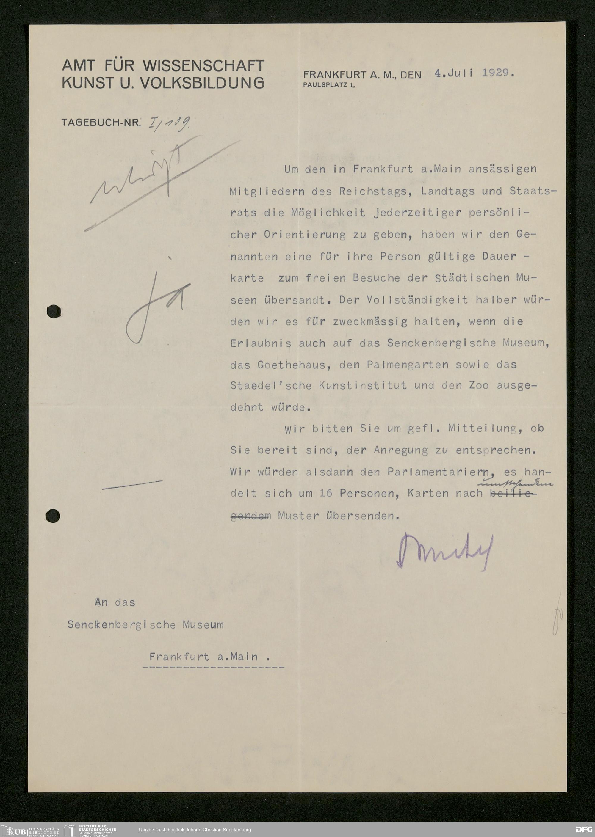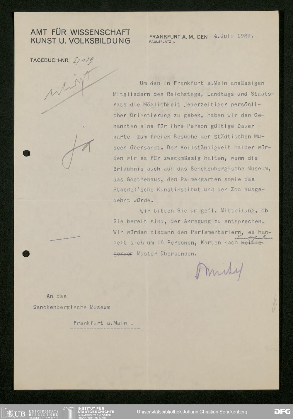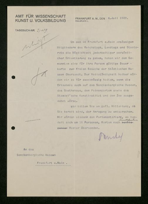 V176 Senckenberg Gesellschaft für Naturforschung, 473 - Korrespondenz mit städtischen Behörden