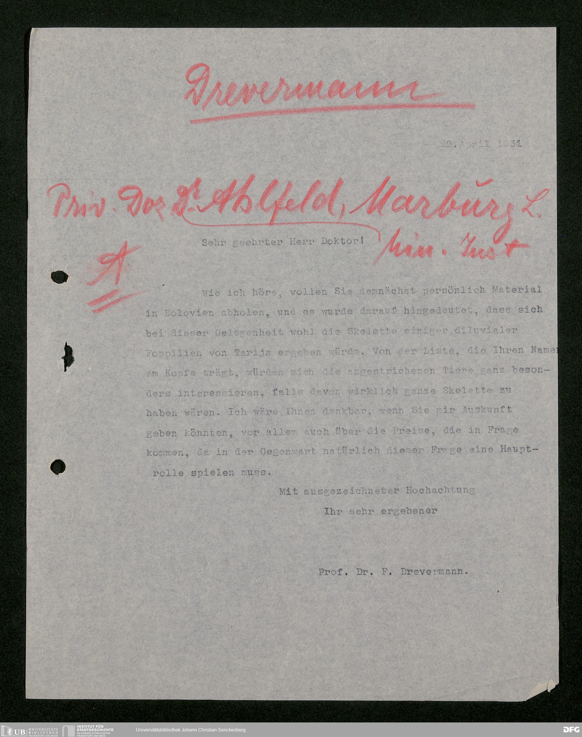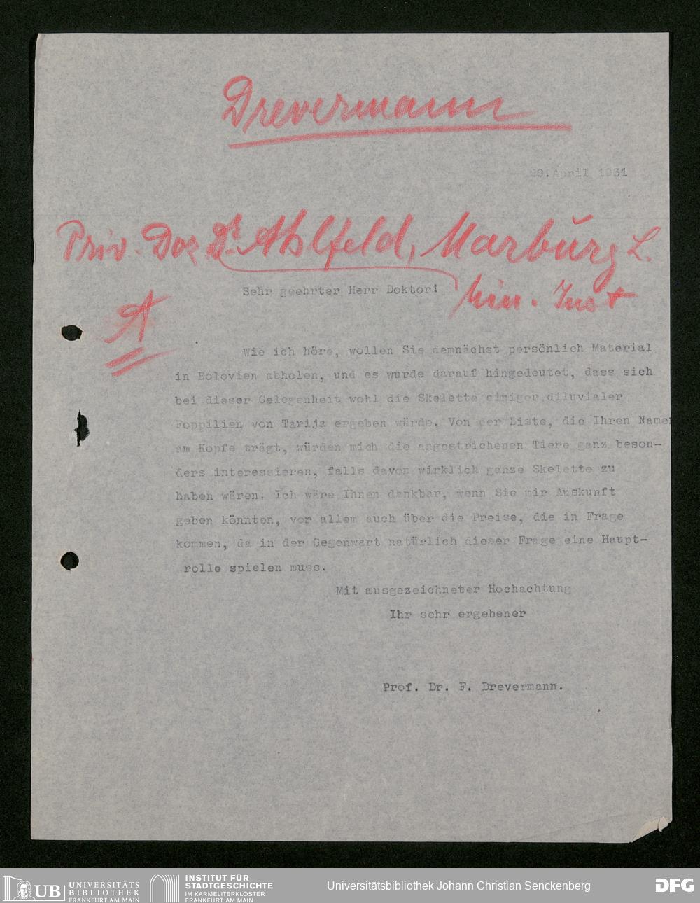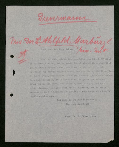 V176 Senckenberg Gesellschaft für Naturforschung, 483 - Korrespondenz des geschäftsführenden Direktors Fritz Drevermann