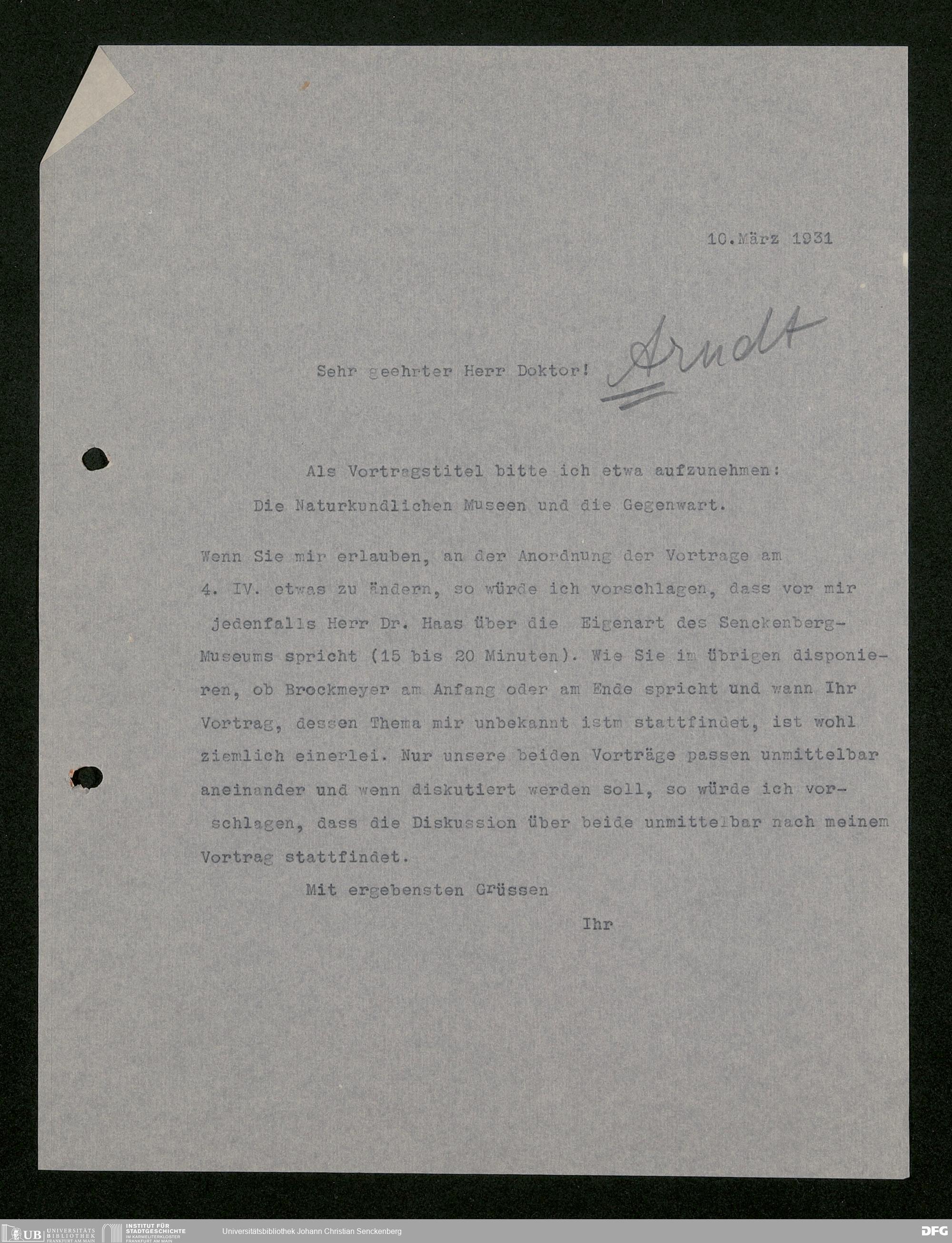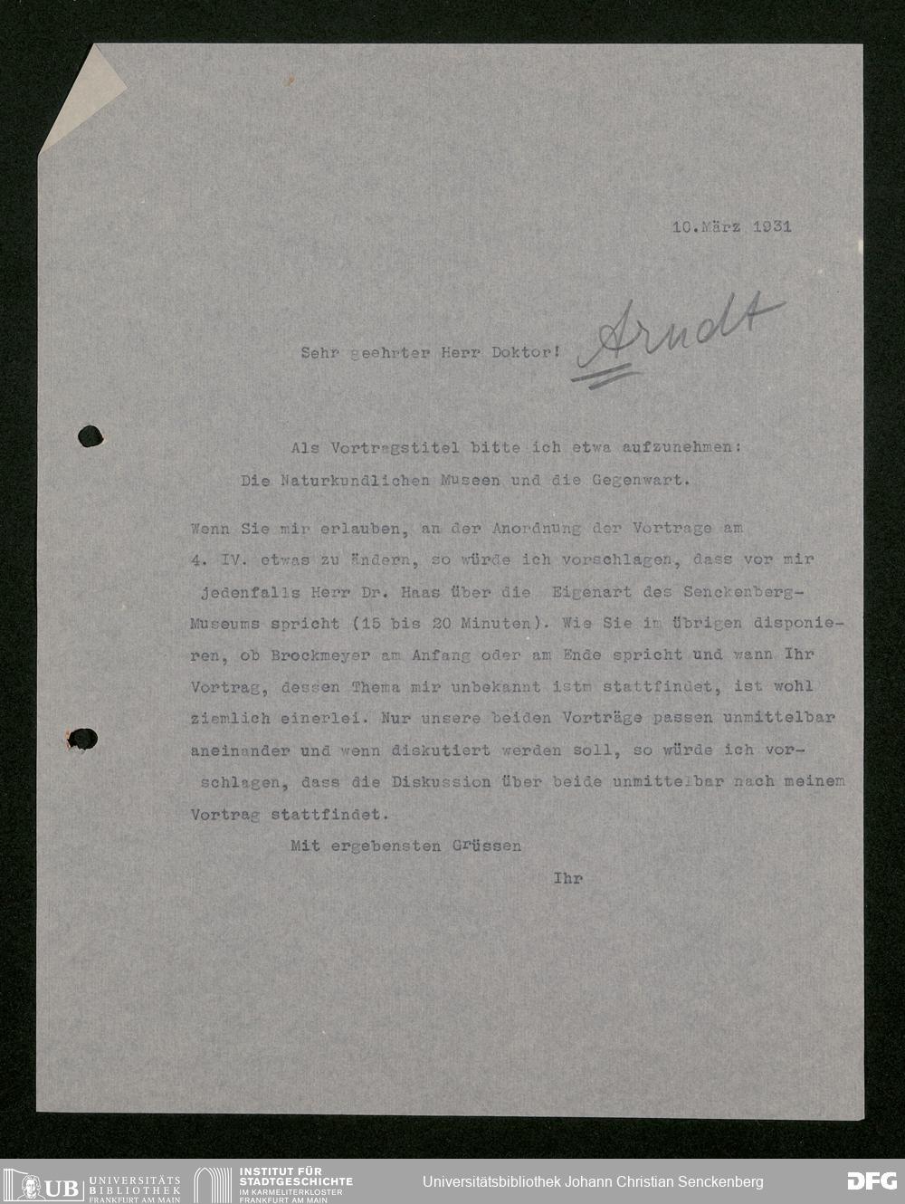 V176 Senckenberg Gesellschaft für Naturforschung, 483 - Korrespondenz des geschäftsführenden Direktors Fritz Drevermann