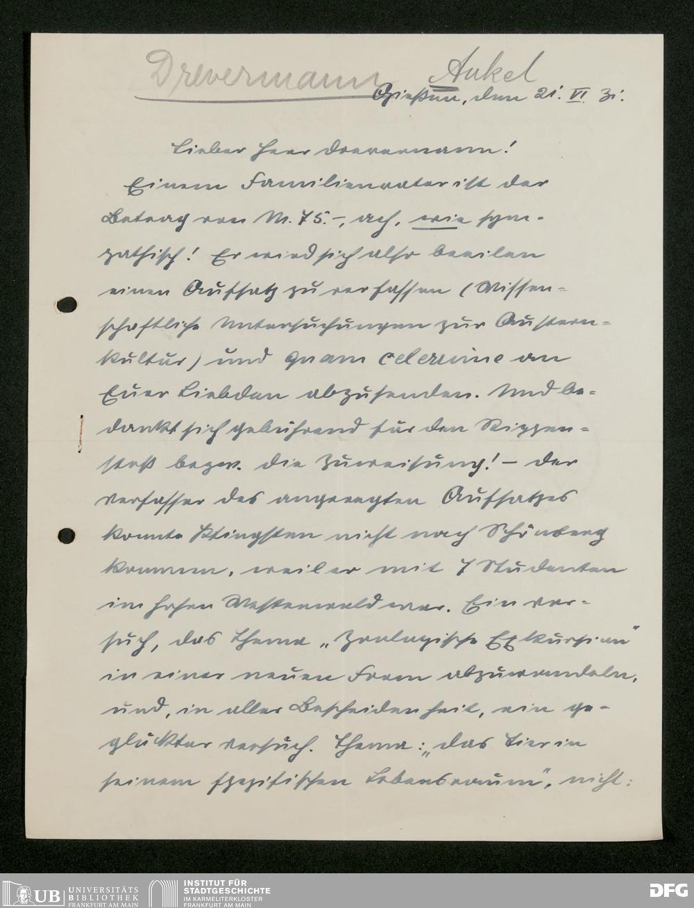 V176 Senckenberg Gesellschaft für Naturforschung, 483 - Korrespondenz des geschäftsführenden Direktors Fritz Drevermann