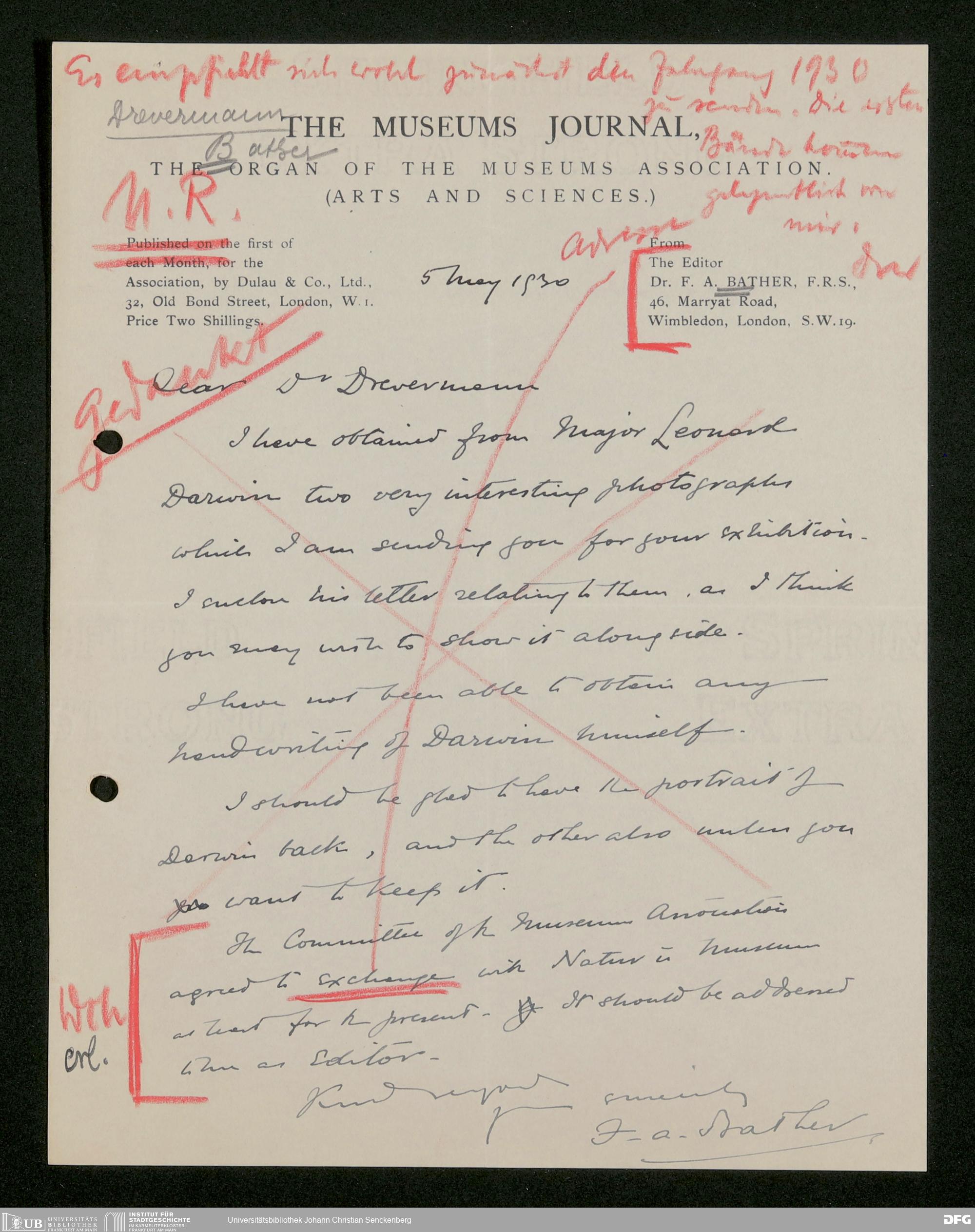 V176 Senckenberg Gesellschaft für Naturforschung, 483 - Korrespondenz des geschäftsführenden Direktors Fritz Drevermann