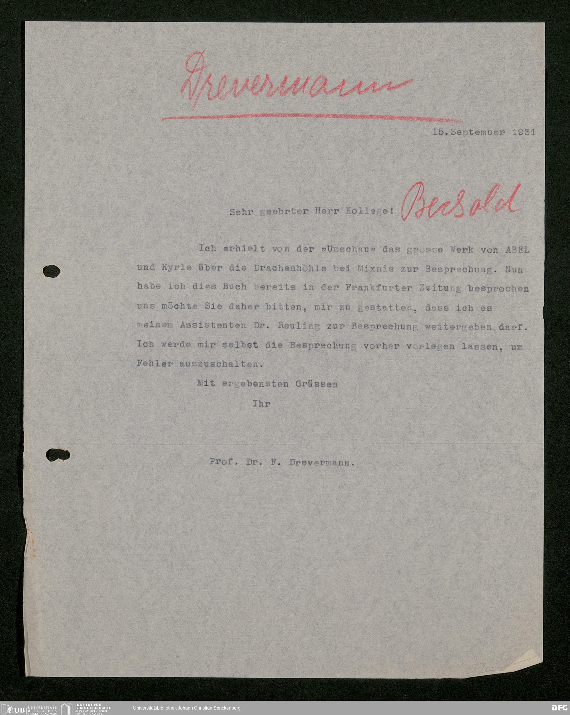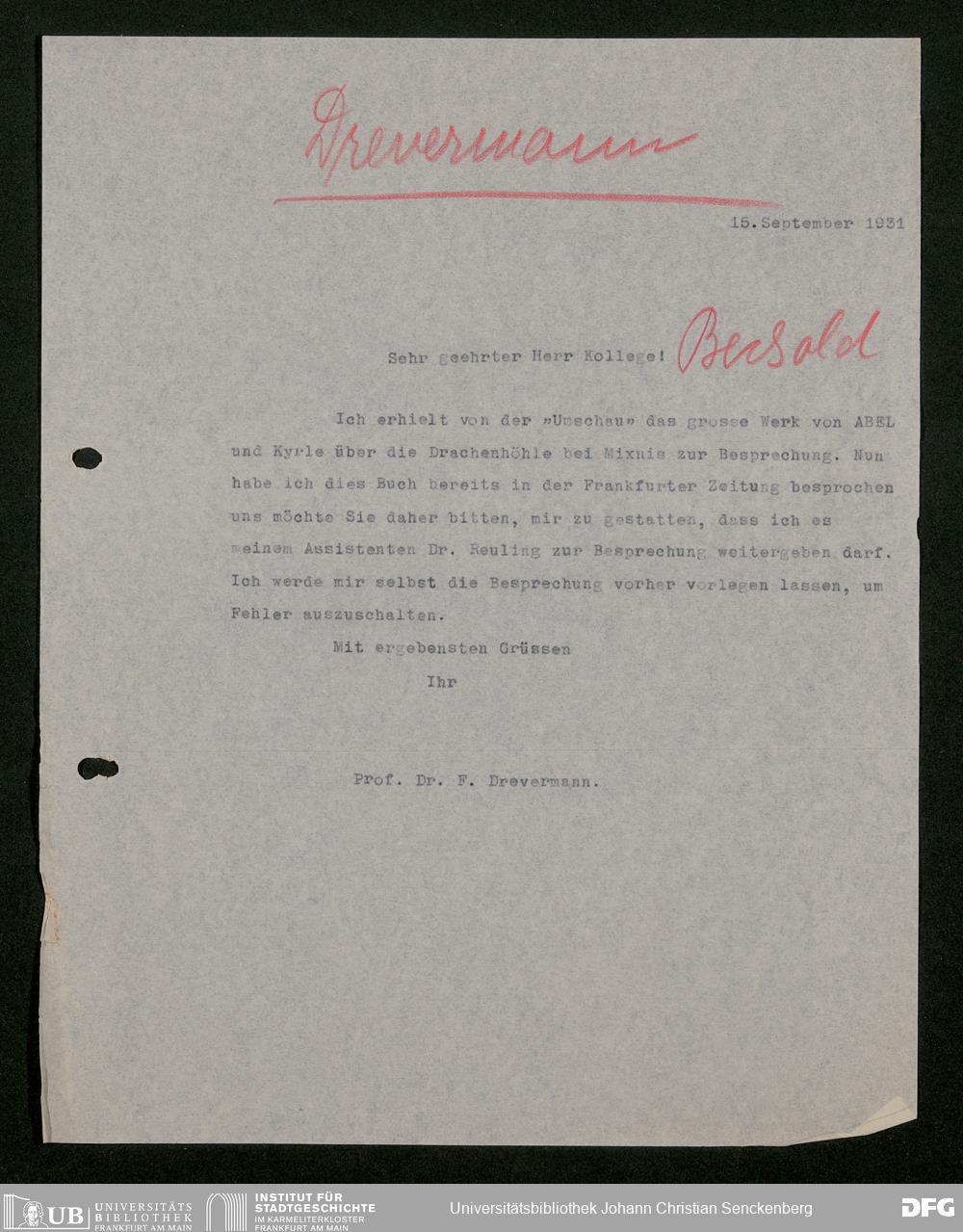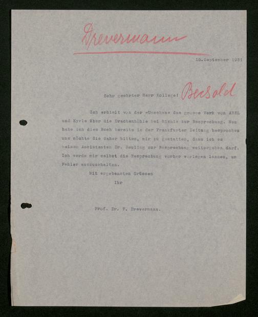 V176 Senckenberg Gesellschaft für Naturforschung, 483 - Korrespondenz des geschäftsführenden Direktors Fritz Drevermann