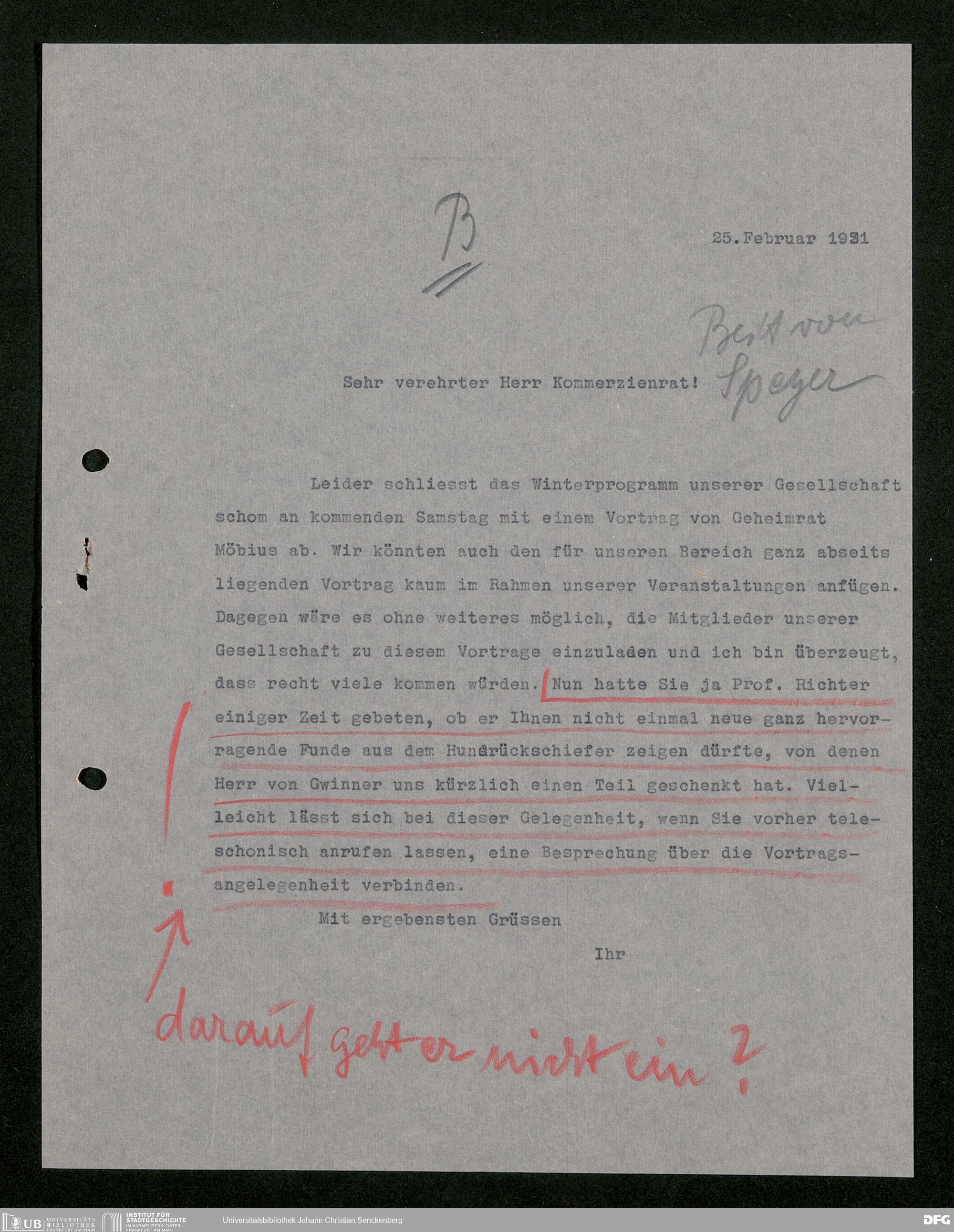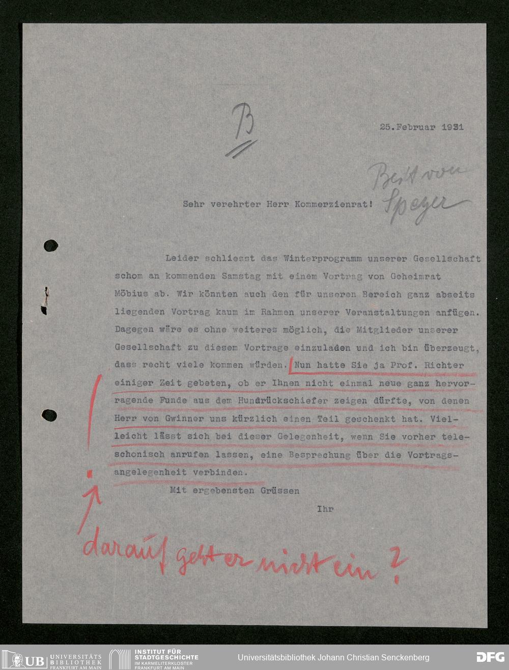V176 Senckenberg Gesellschaft für Naturforschung, 483 - Korrespondenz des geschäftsführenden Direktors Fritz Drevermann