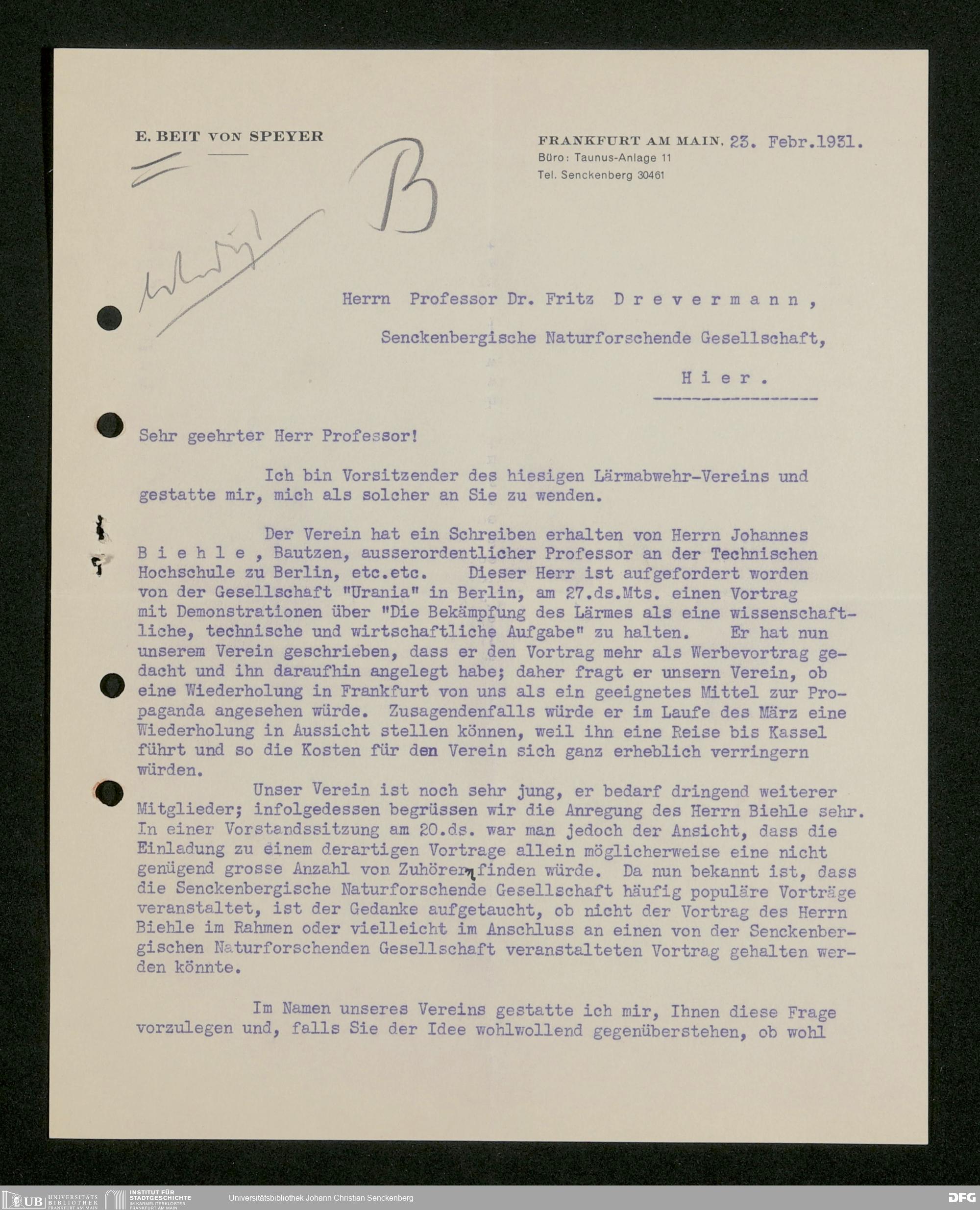 V176 Senckenberg Gesellschaft für Naturforschung, 483 - Korrespondenz des geschäftsführenden Direktors Fritz Drevermann