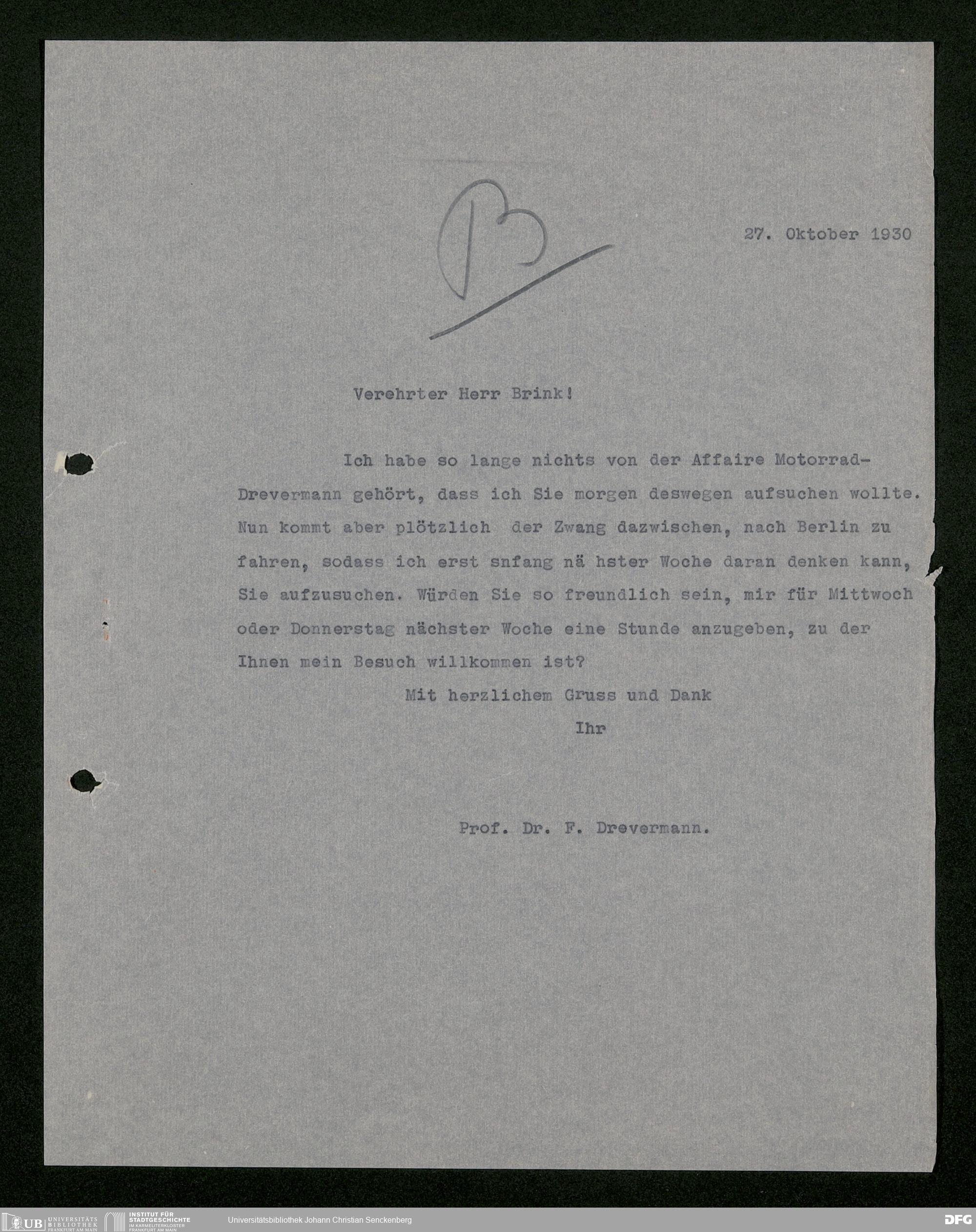 V176 Senckenberg Gesellschaft für Naturforschung, 483 - Korrespondenz des geschäftsführenden Direktors Fritz Drevermann