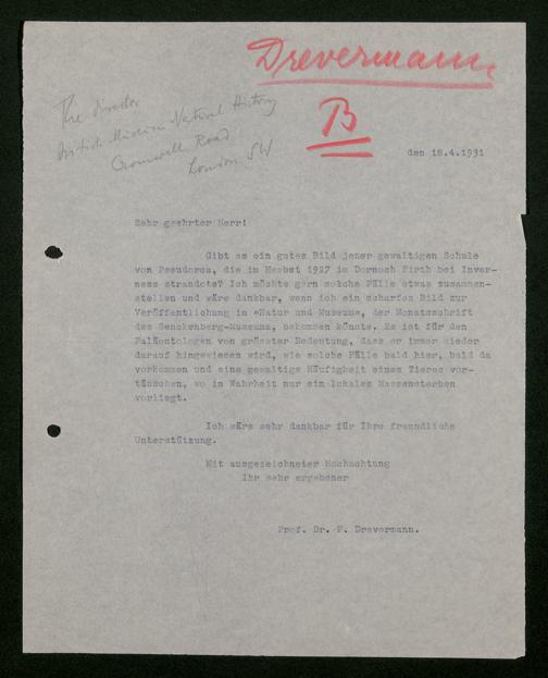 V176 Senckenberg Gesellschaft für Naturforschung, 483 - Korrespondenz des geschäftsführenden Direktors Fritz Drevermann