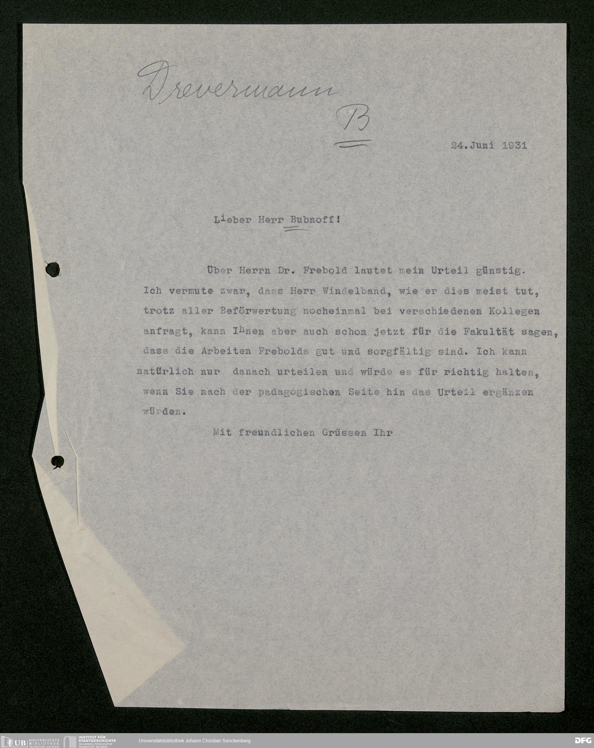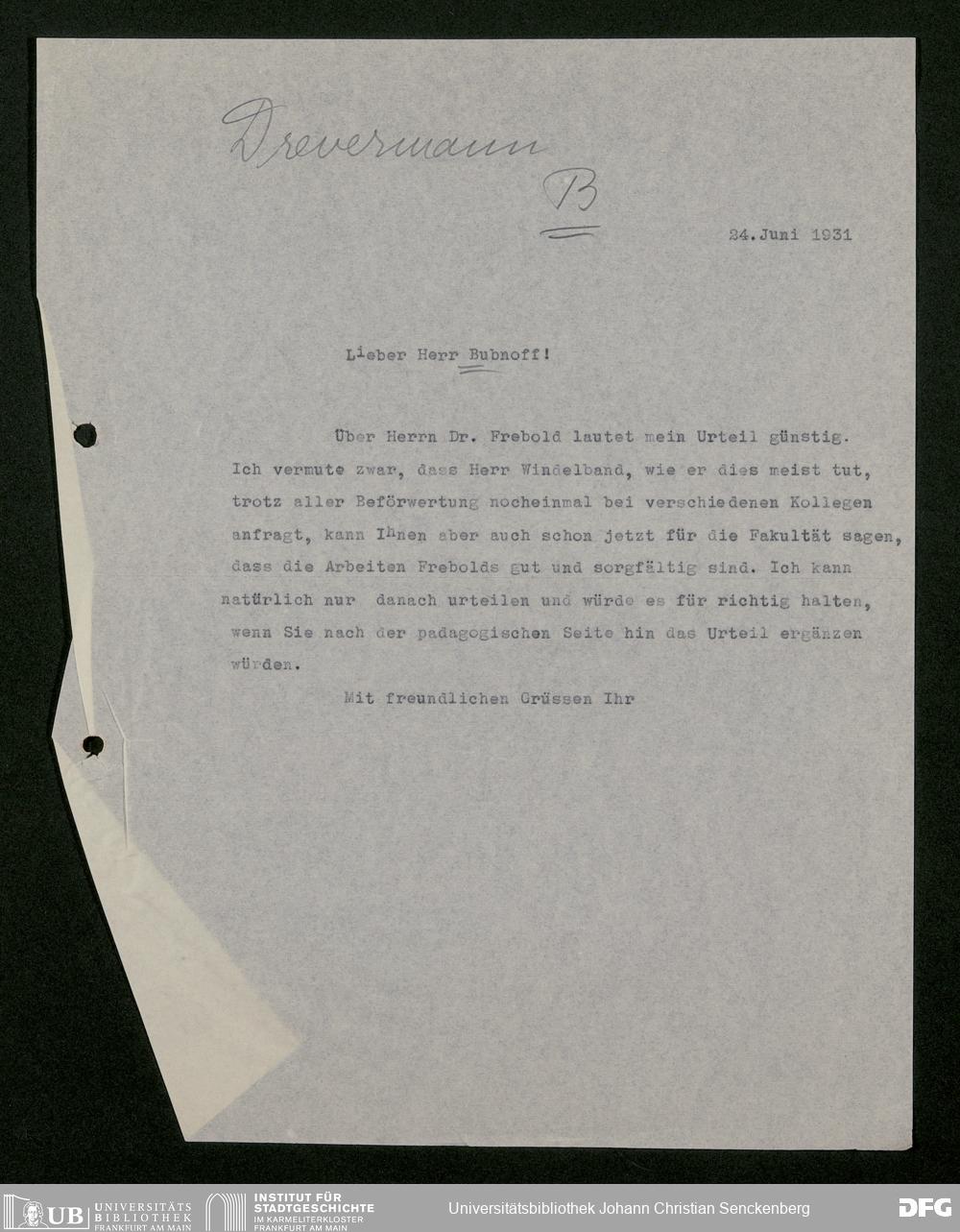 V176 Senckenberg Gesellschaft für Naturforschung, 483 - Korrespondenz des geschäftsführenden Direktors Fritz Drevermann