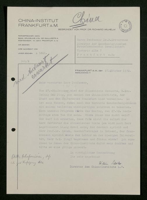V176 Senckenberg Gesellschaft für Naturforschung, 483 - Korrespondenz des geschäftsführenden Direktors Fritz Drevermann
