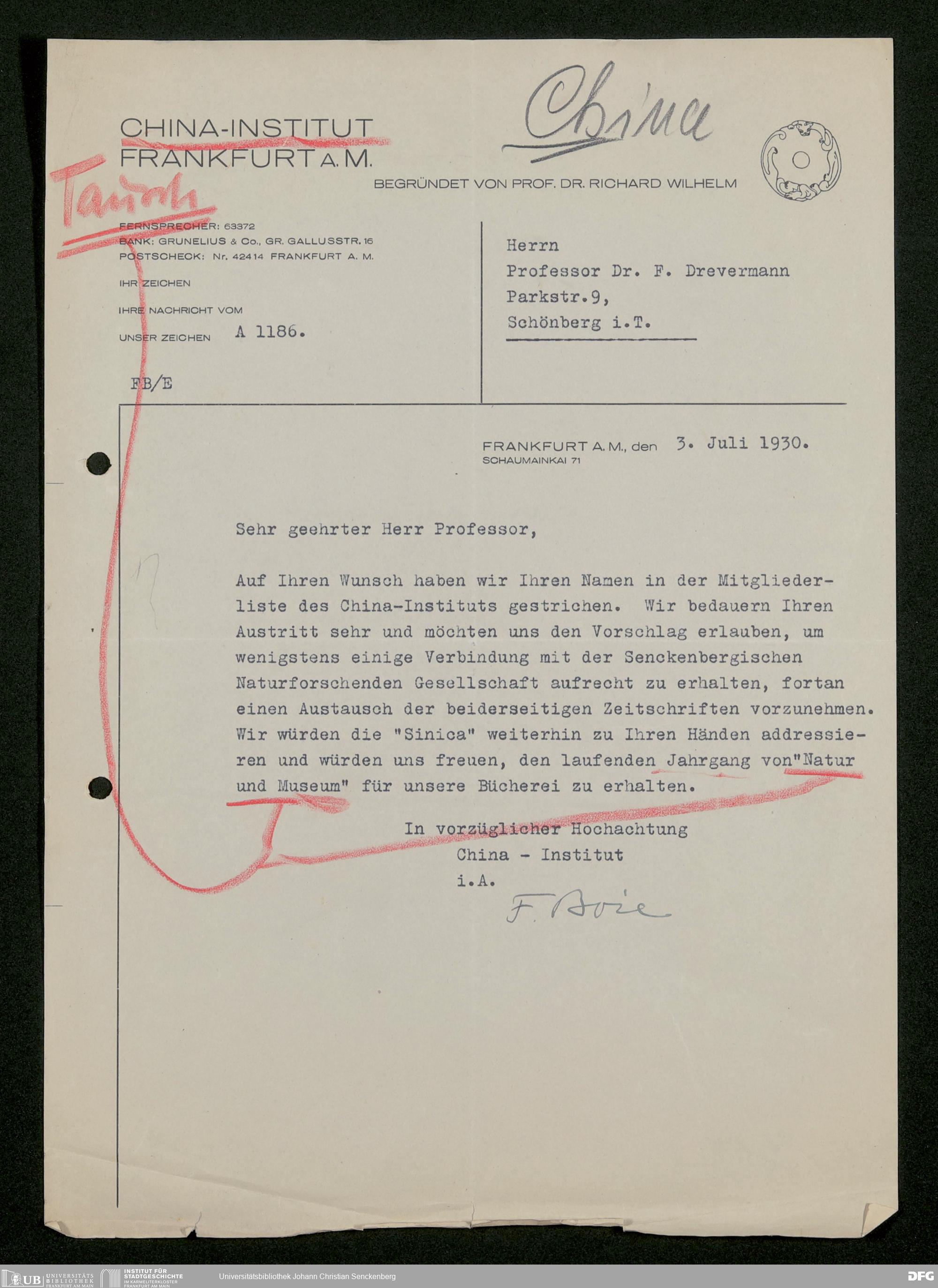 V176 Senckenberg Gesellschaft für Naturforschung, 483 - Korrespondenz des geschäftsführenden Direktors Fritz Drevermann