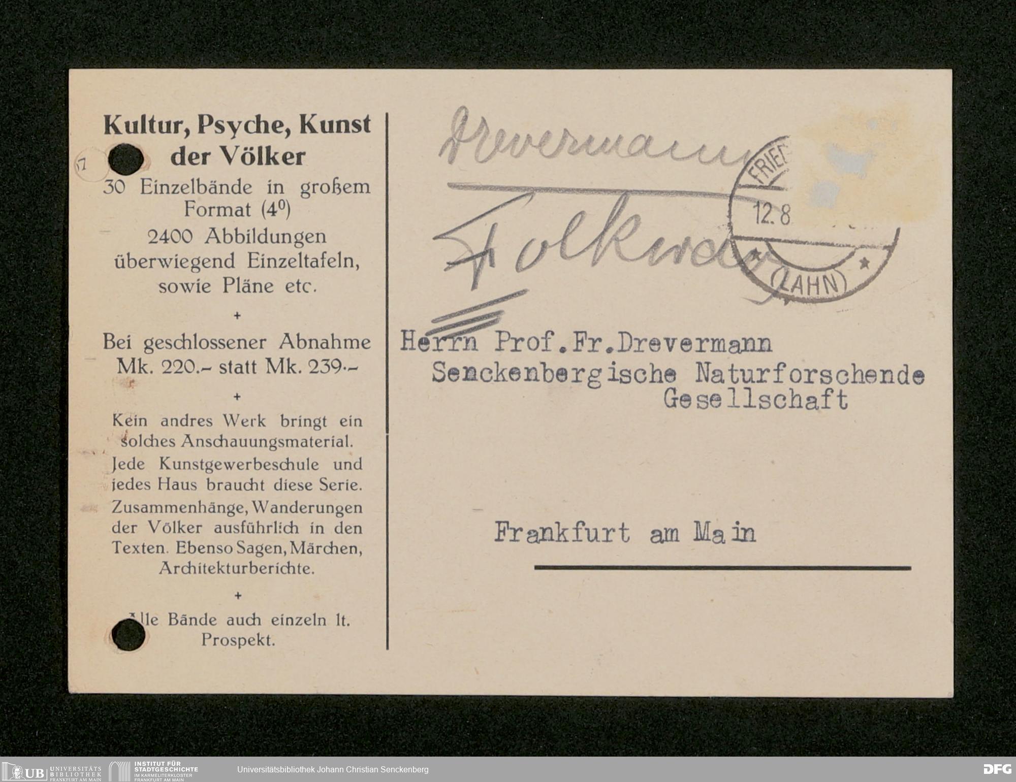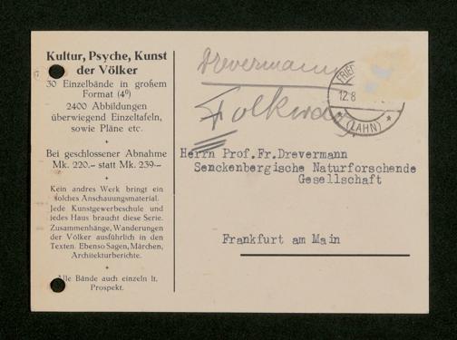 V176 Senckenberg Gesellschaft für Naturforschung, 483 - Korrespondenz des geschäftsführenden Direktors Fritz Drevermann