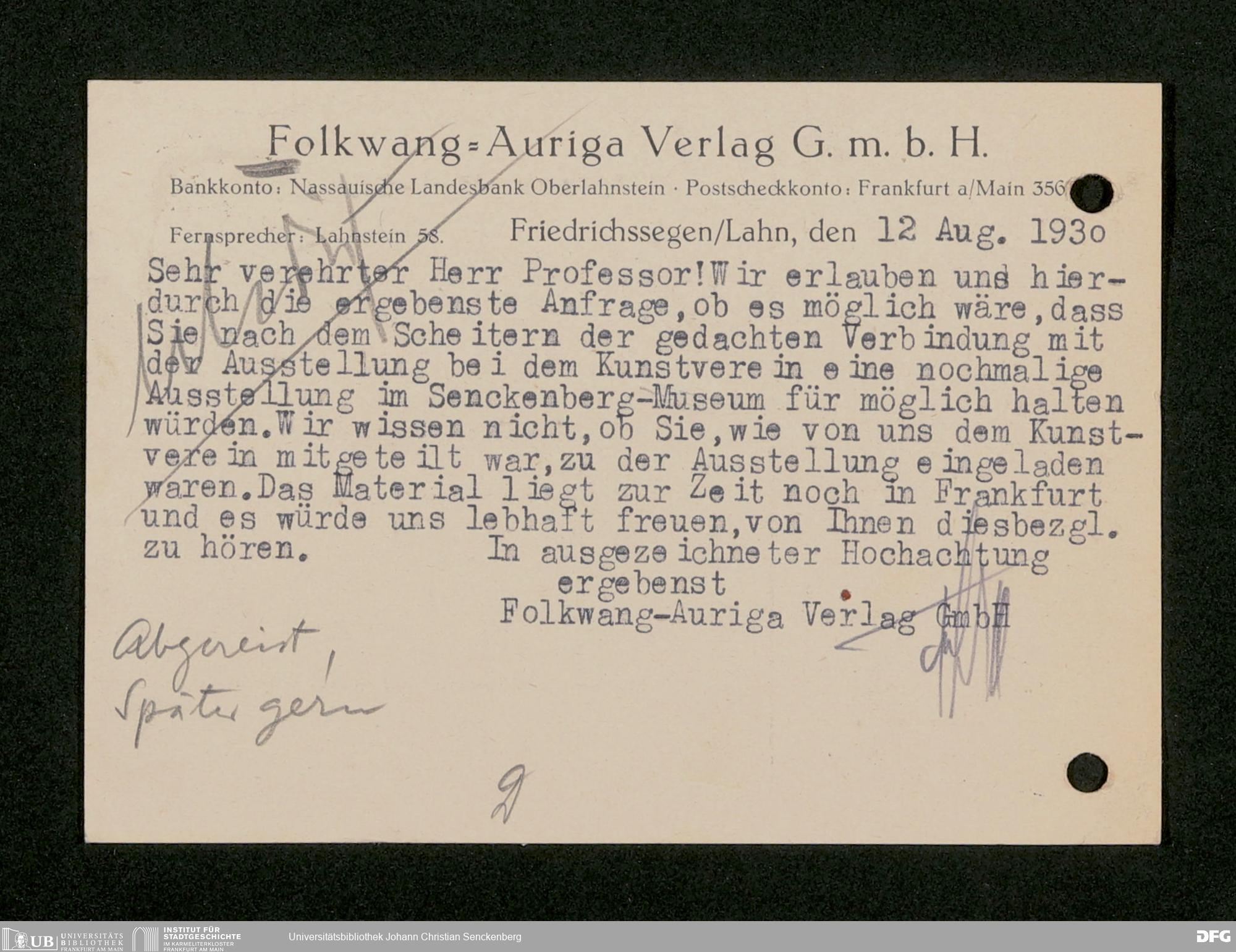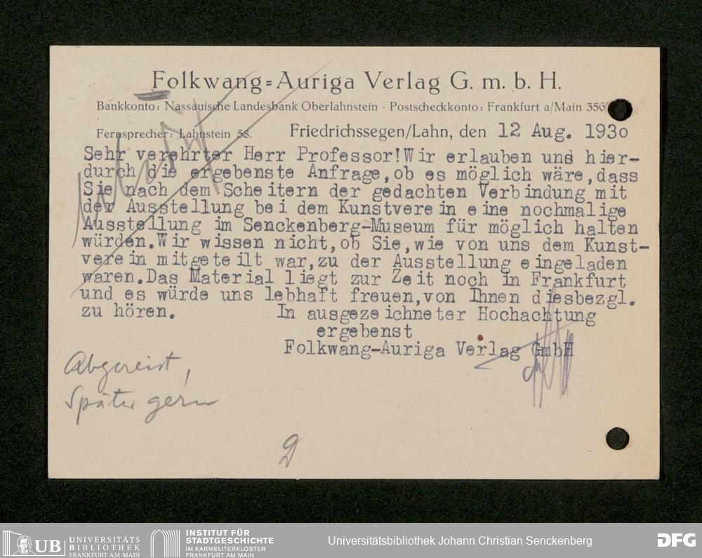 V176 Senckenberg Gesellschaft für Naturforschung, 483 - Korrespondenz des geschäftsführenden Direktors Fritz Drevermann
