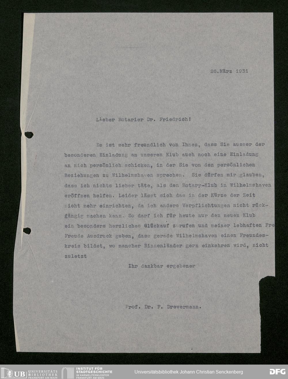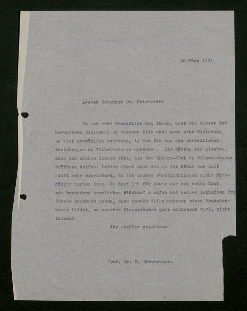 V176 Senckenberg Gesellschaft für Naturforschung, 483 - Korrespondenz des geschäftsführenden Direktors Fritz Drevermann