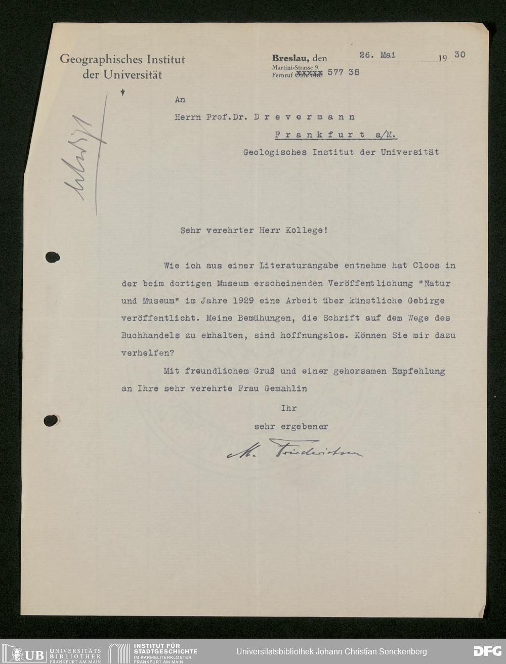 V176 Senckenberg Gesellschaft für Naturforschung, 483 - Korrespondenz des geschäftsführenden Direktors Fritz Drevermann