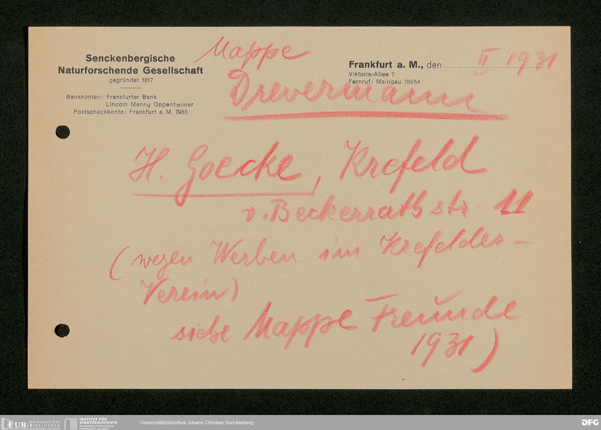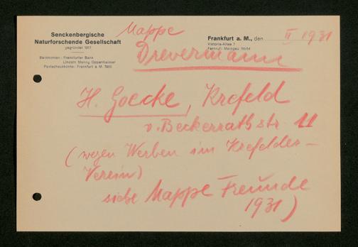 V176 Senckenberg Gesellschaft für Naturforschung, 483 - Korrespondenz des geschäftsführenden Direktors Fritz Drevermann
