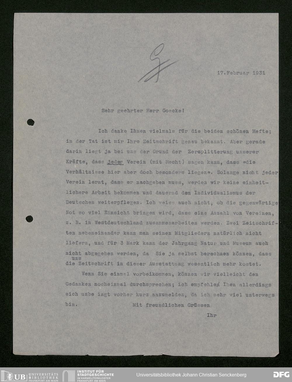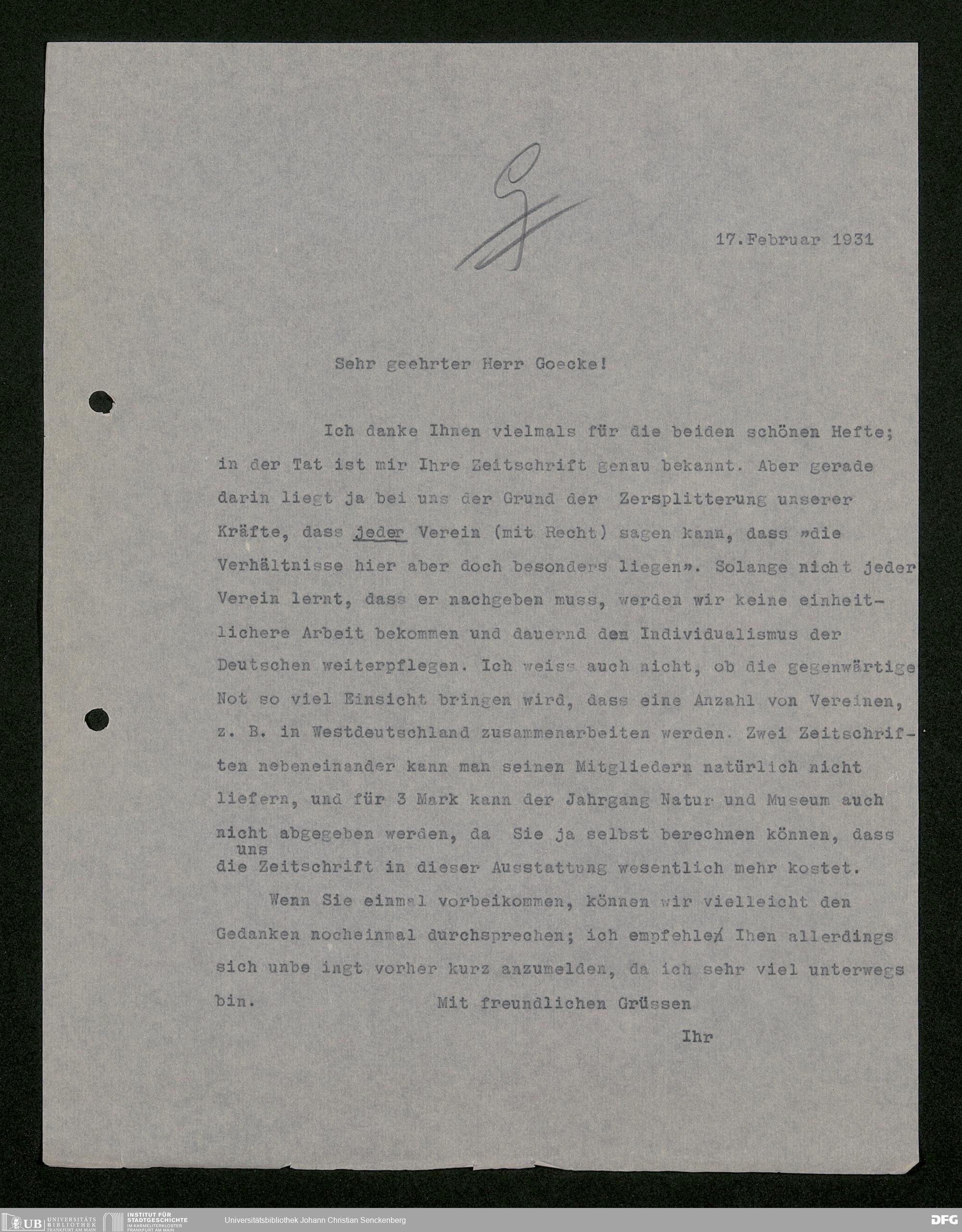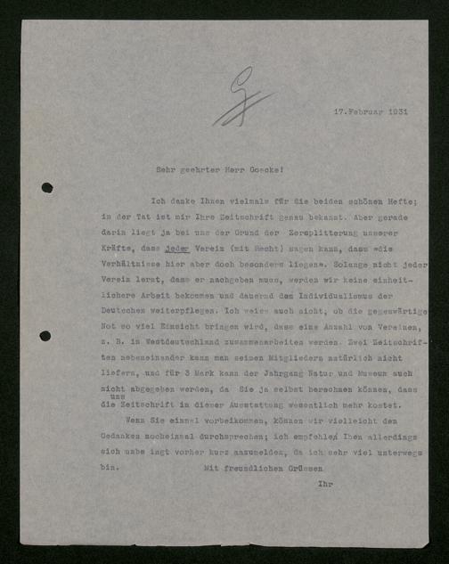 V176 Senckenberg Gesellschaft für Naturforschung, 483 - Korrespondenz des geschäftsführenden Direktors Fritz Drevermann