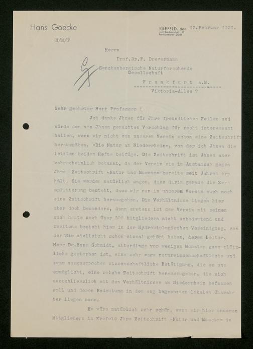 V176 Senckenberg Gesellschaft für Naturforschung, 483 - Korrespondenz des geschäftsführenden Direktors Fritz Drevermann
