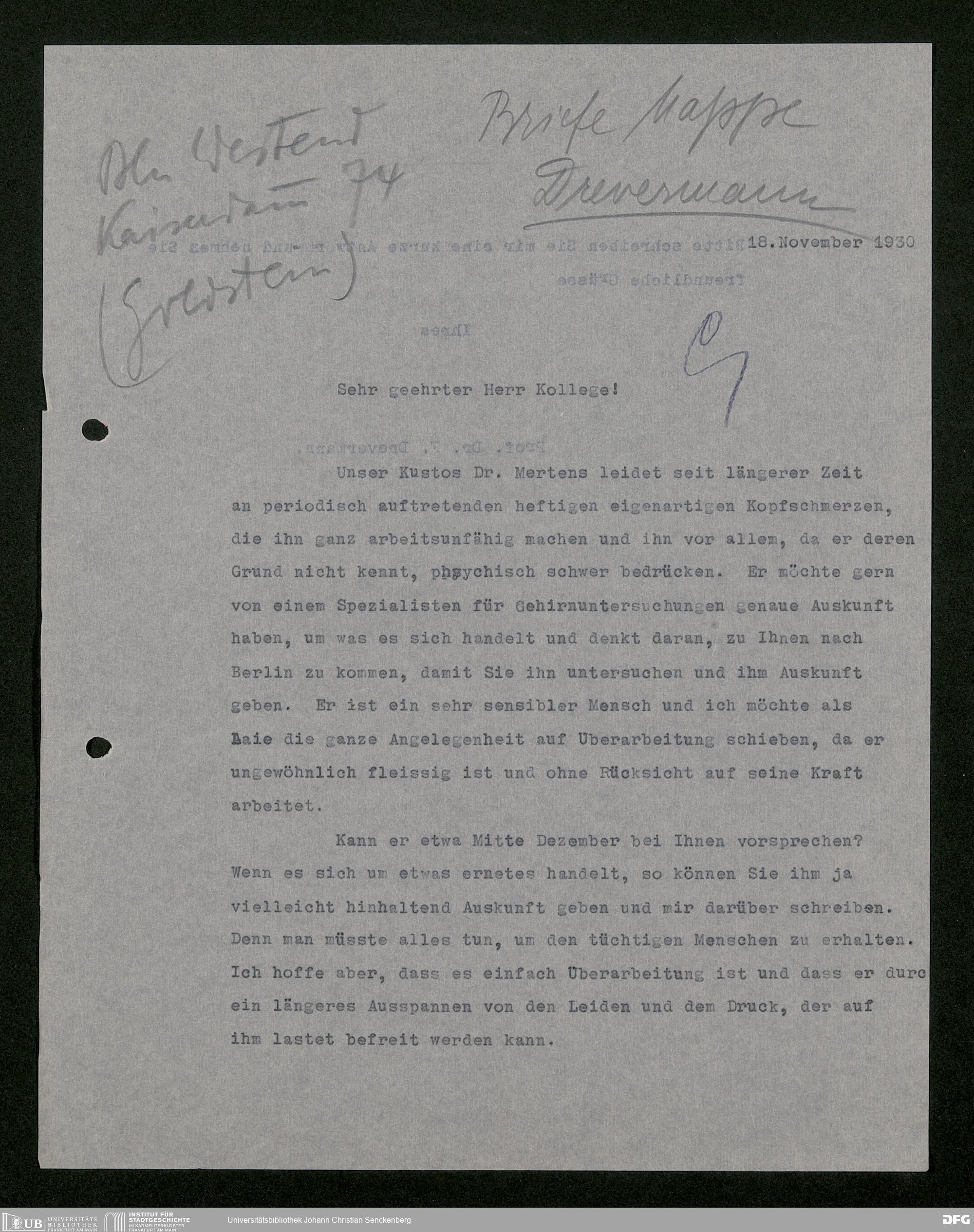 V176 Senckenberg Gesellschaft für Naturforschung, 483 - Korrespondenz des geschäftsführenden Direktors Fritz Drevermann