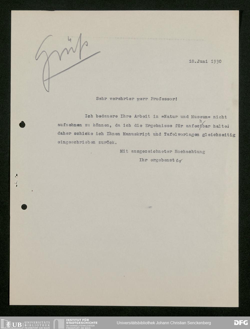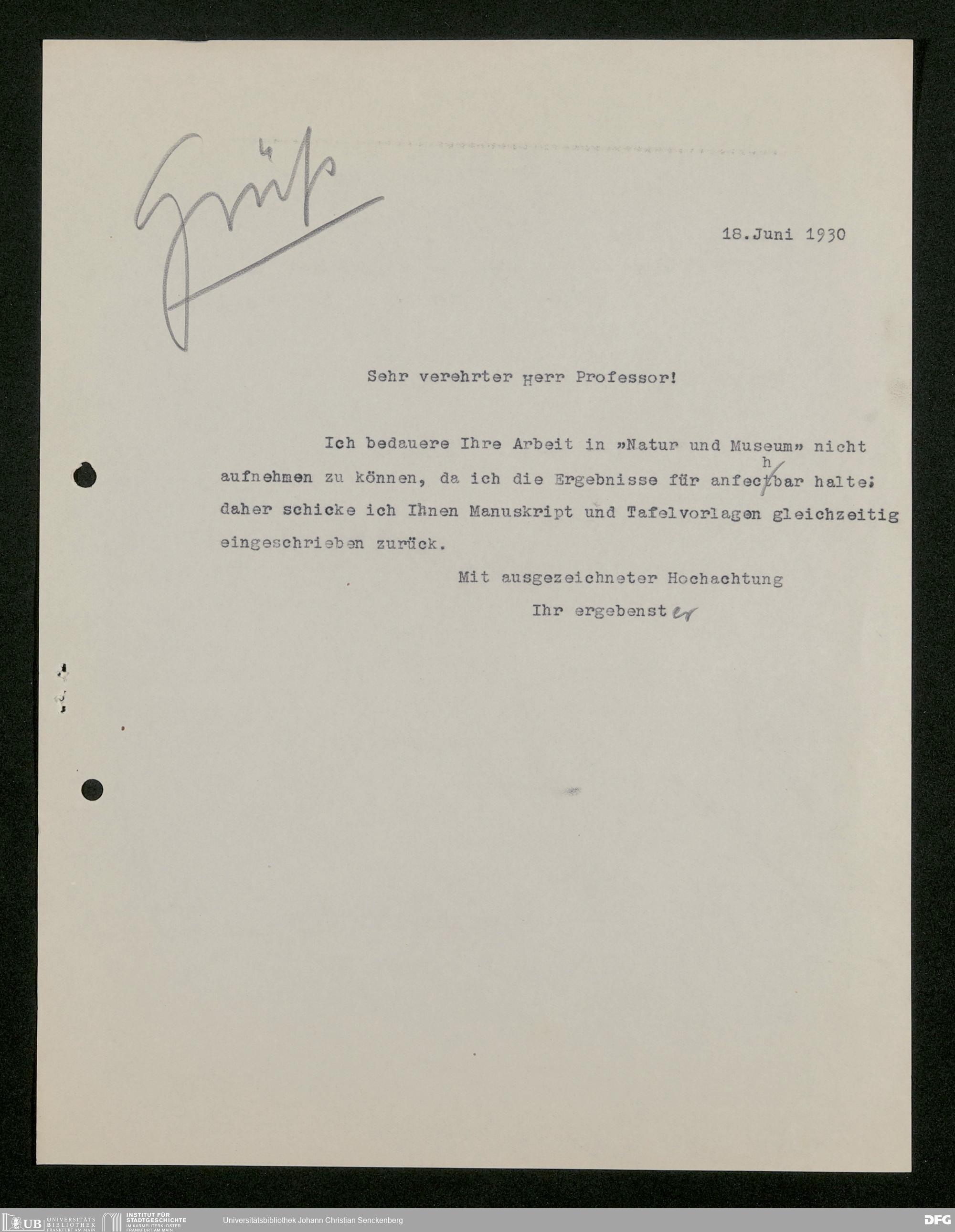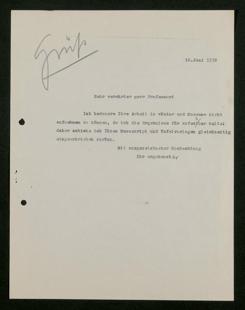 V176 Senckenberg Gesellschaft für Naturforschung, 483 - Korrespondenz des geschäftsführenden Direktors Fritz Drevermann