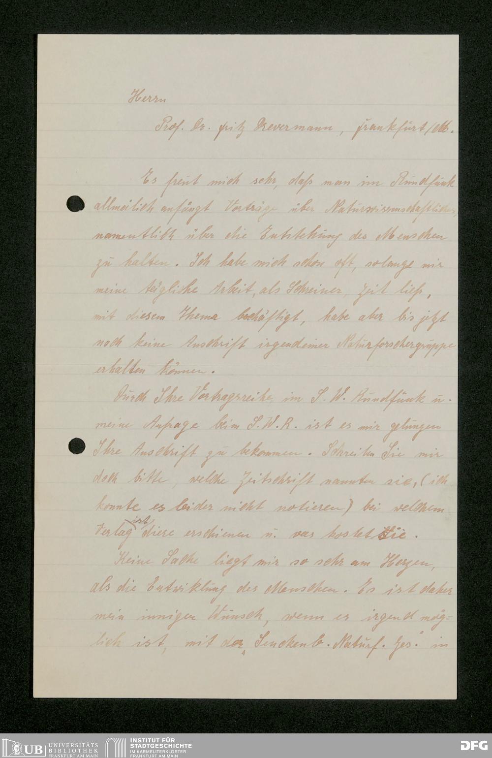 V176 Senckenberg Gesellschaft für Naturforschung, 483 - Korrespondenz des geschäftsführenden Direktors Fritz Drevermann