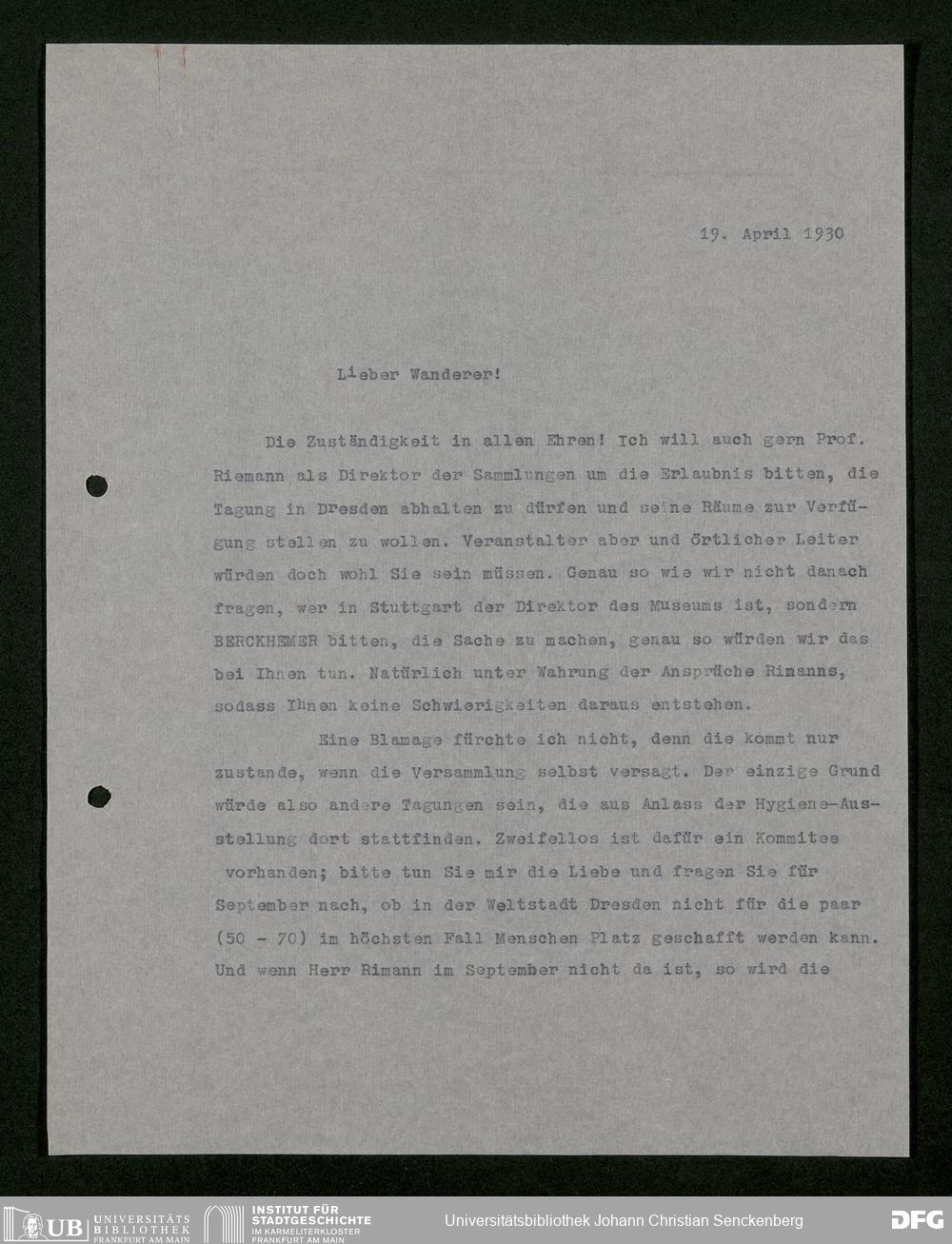 V176 Senckenberg Gesellschaft für Naturforschung, 483 - Korrespondenz des geschäftsführenden Direktors Fritz Drevermann