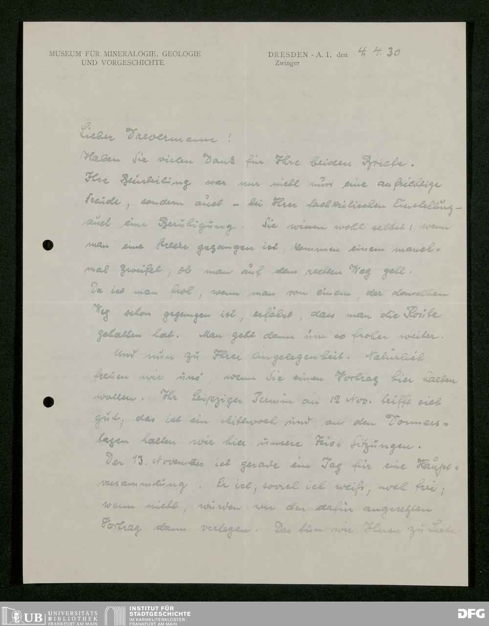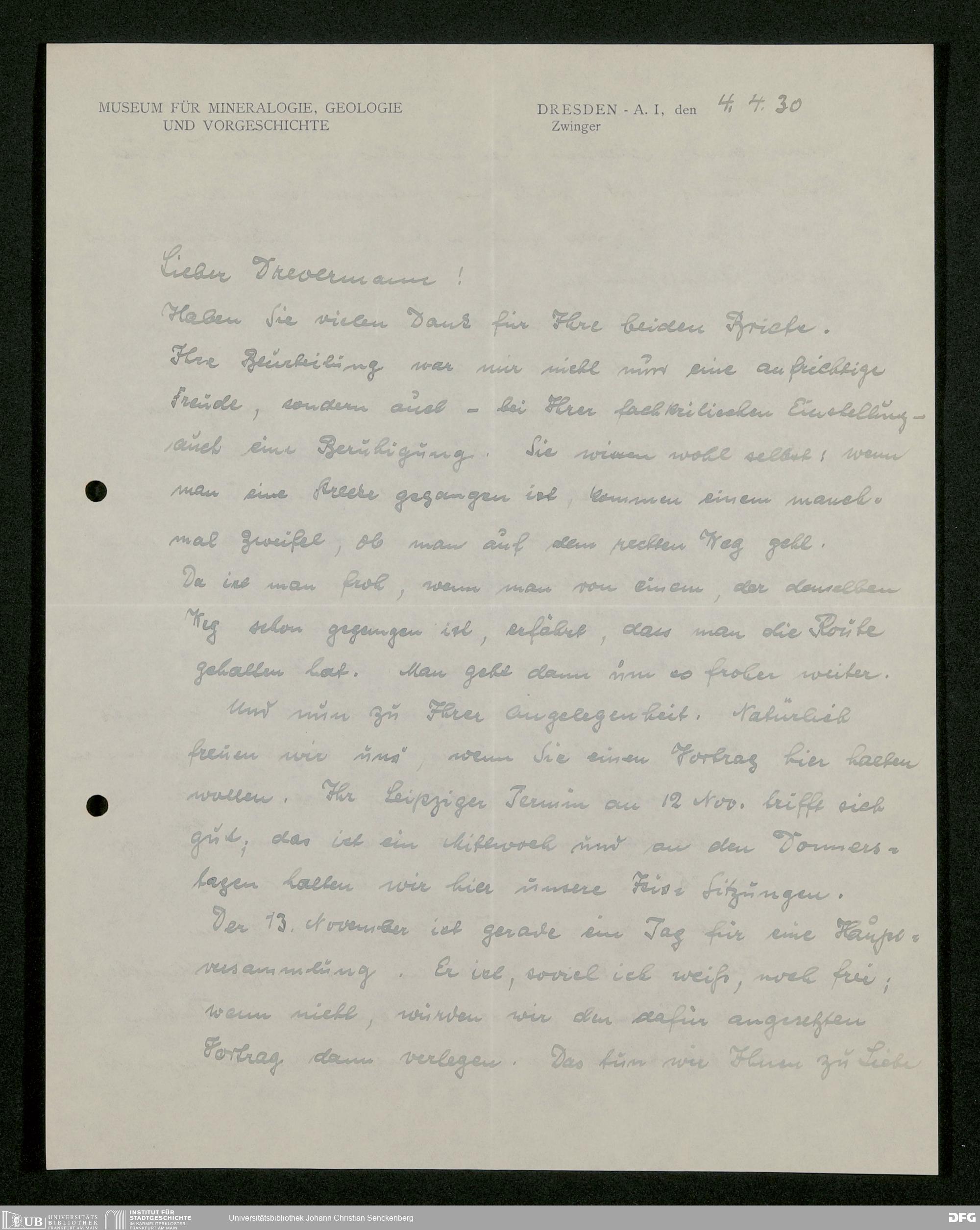 V176 Senckenberg Gesellschaft für Naturforschung, 483 - Korrespondenz des geschäftsführenden Direktors Fritz Drevermann